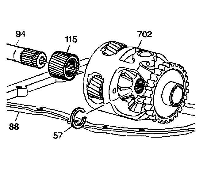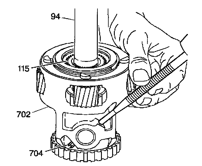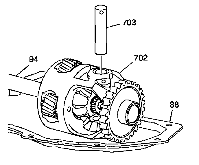 1. Remove the differential pinion shaft retaining pin (704). Use a pin punch.