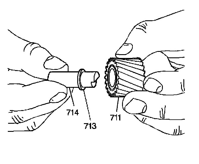 1. Install the pinion gear needle bearing spacer (713) onto the planet pinion gear (711).