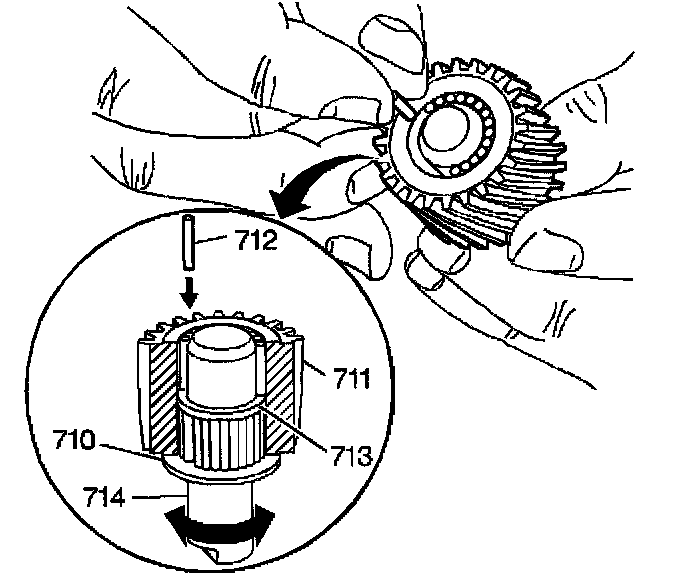 Important: Assemble the pinion gears (711) in the same direction that you removed the pinion gears in order to prevent noise due to changing the gear wear pattern.