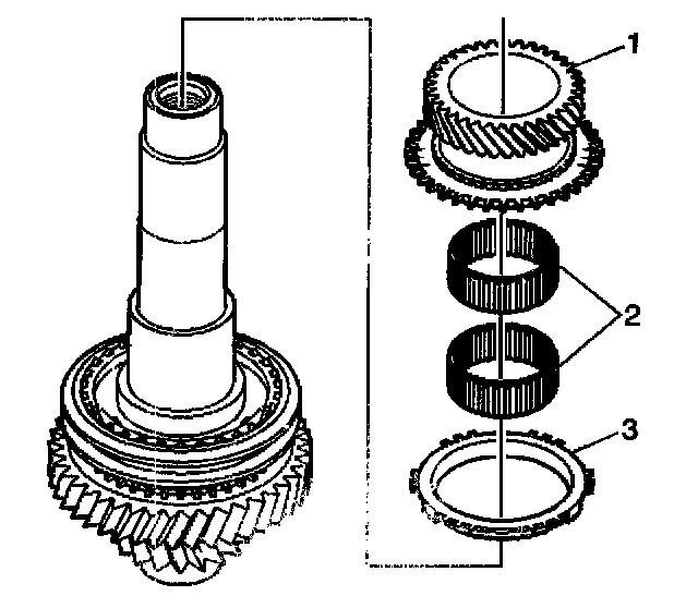 8. Install the 5th gear blocking ring (3).