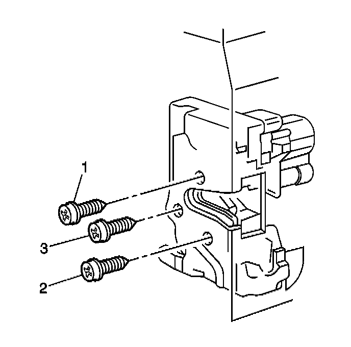 4. Remove the rear door lock screws (1, 2, 3).