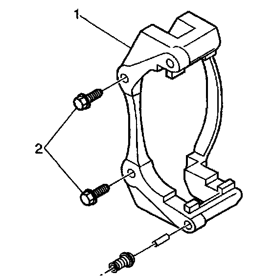 10. Inspect the caliper bolts (2) and pins for corrosion or damage. Do not attempt to polish away corrosion. If corrosion is found, use new parts, including bushings, when installing the caliper.