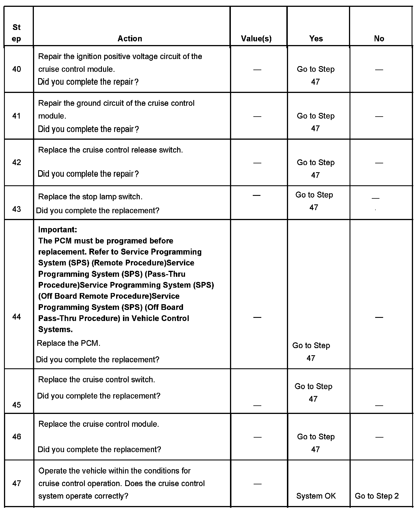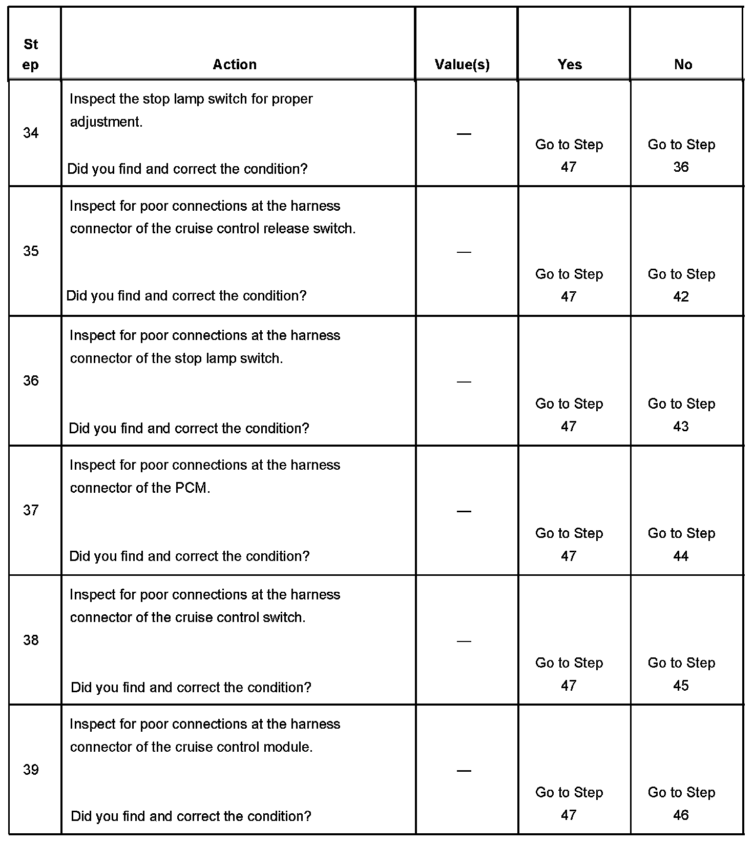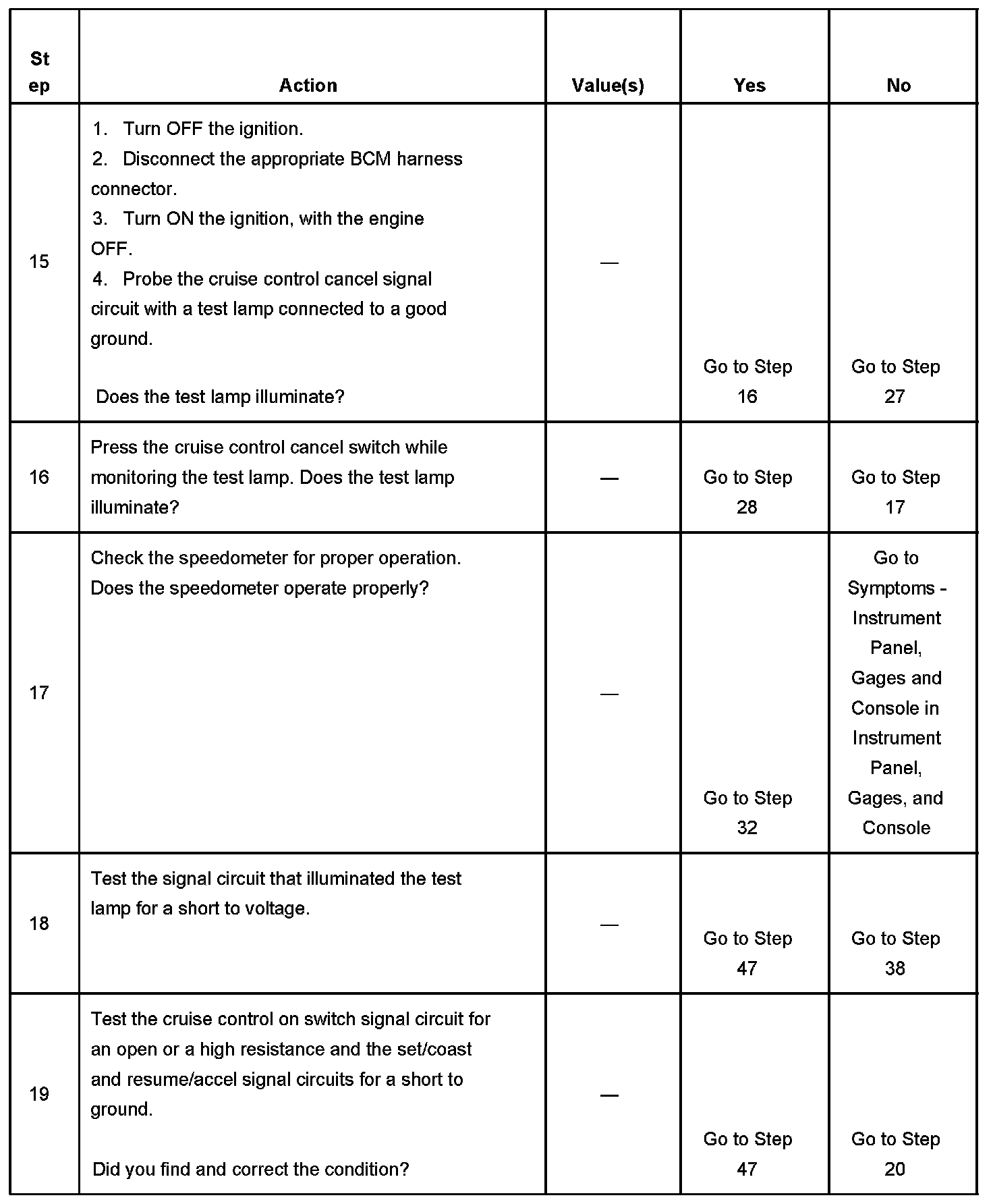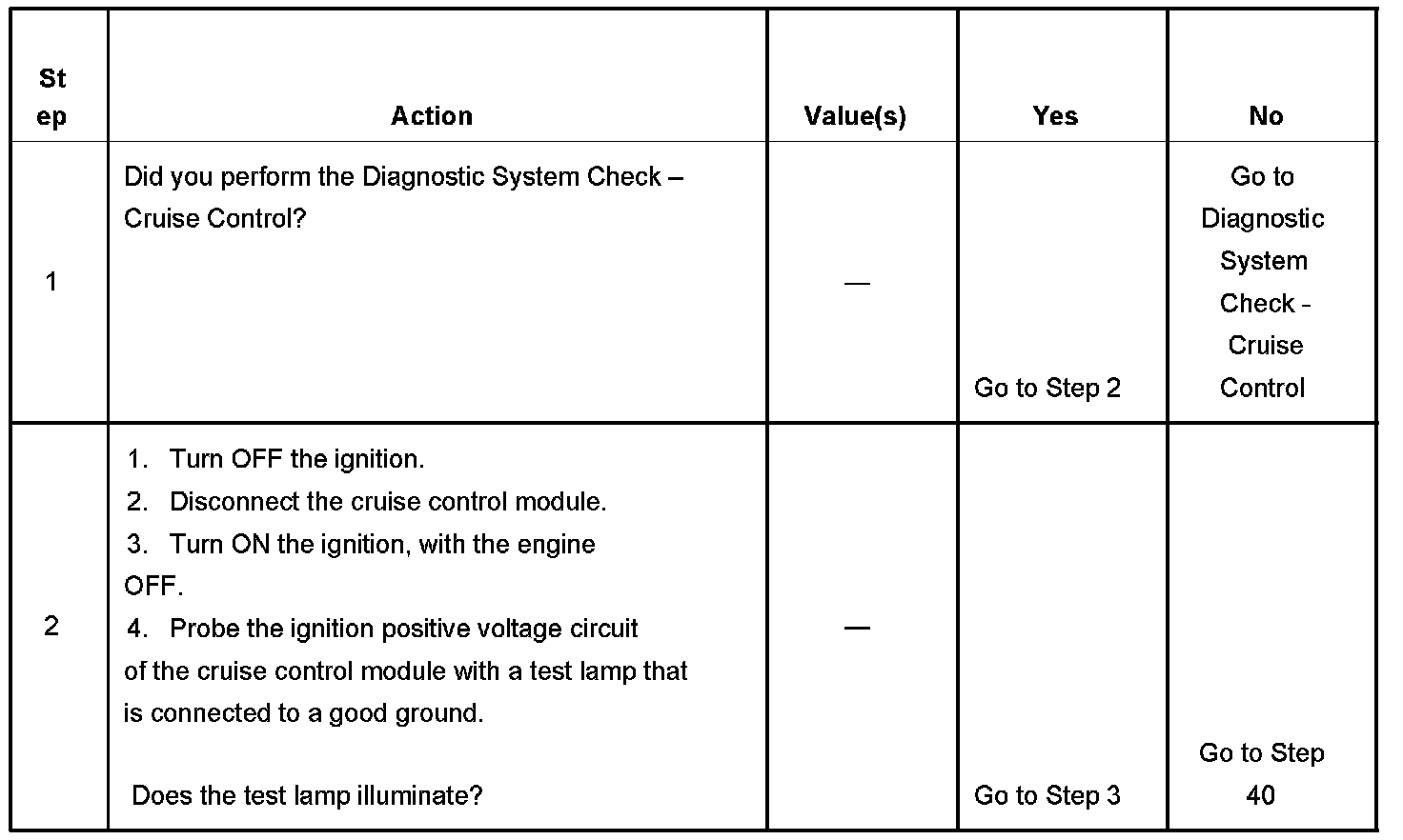 CRUISE CONTROL INOPERATIVE/MALFUNCTIONINGDIAGNOSTIC AIDS