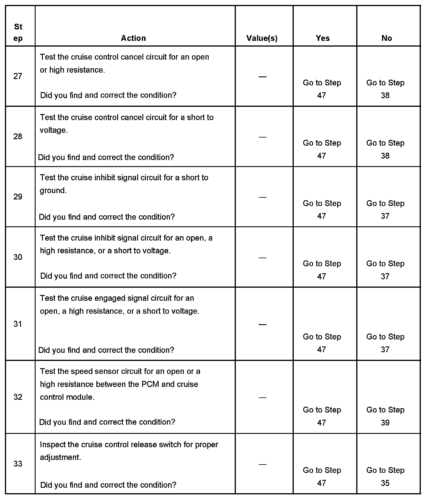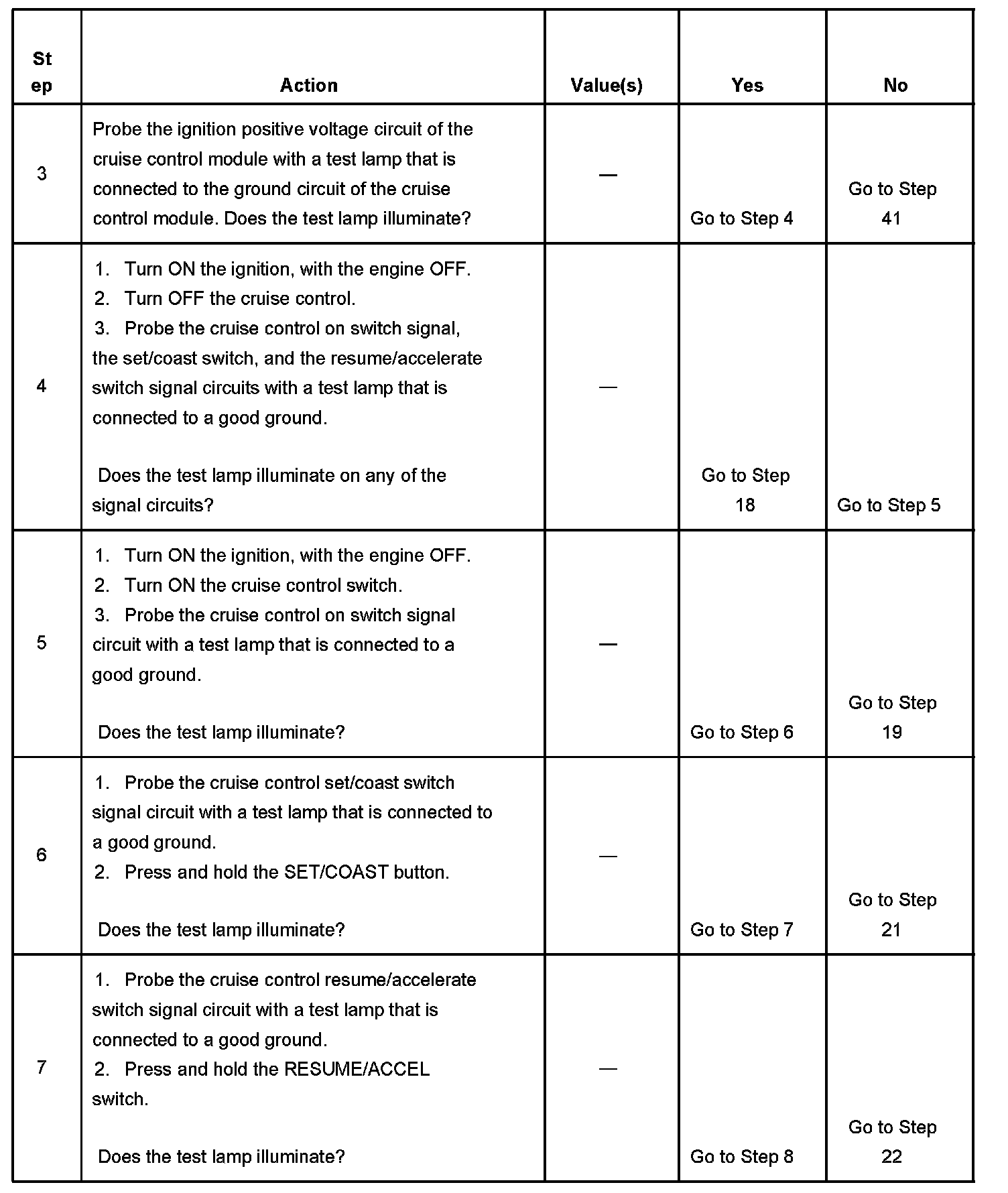 - When testing vehicles equipped with steering wheel controls, the steering wheel must be rotated to each stop position while testing the cruise control switch signal circuits. This will assure the integrity of the SIR coil.