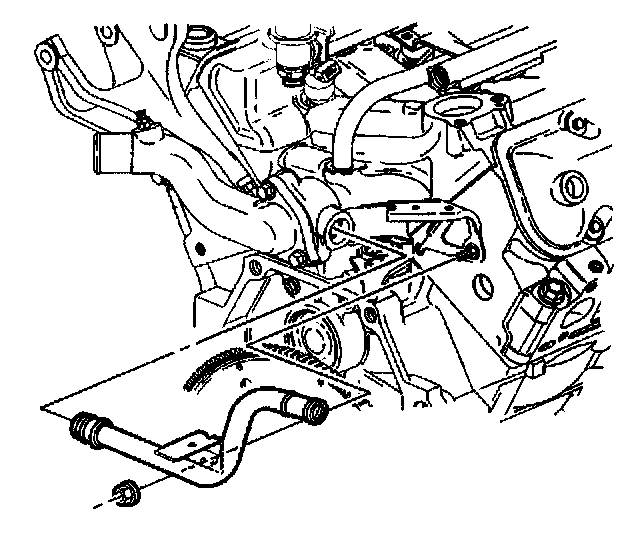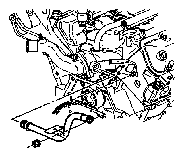 7. Remove the heater by-pass at the coolant pump and the cylinder head.