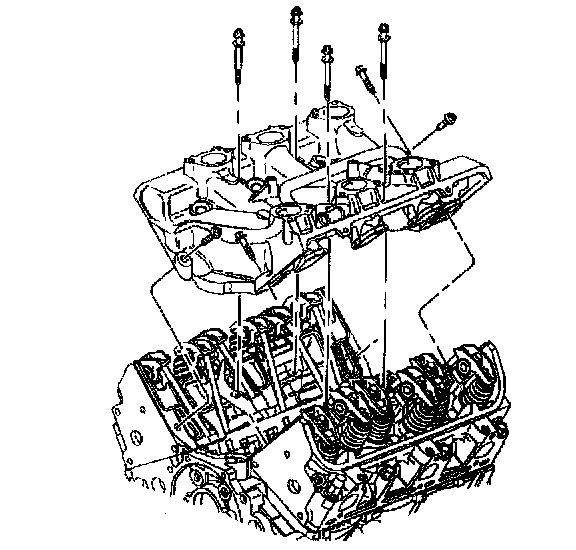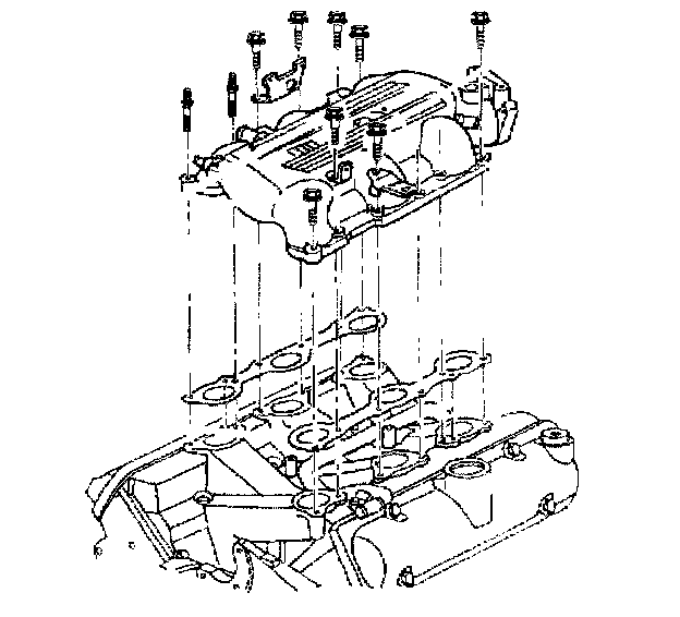 The torque specification is a 2-step process; tighten the vertical lower intake manifold bolts (the four middle ones) to 7 Nm (62 lb in). Tighten the diagonal lower intake manifold bolts (two on each end) to 7 Nm (62 lb in).Tighten the vertical lower intake manifold bolts (the four middle ones) to 13 Nm (115 lb in). Tighten the diagonal lower intake manifold bolts (two on each end) to 25 Nm (18 lb ft).