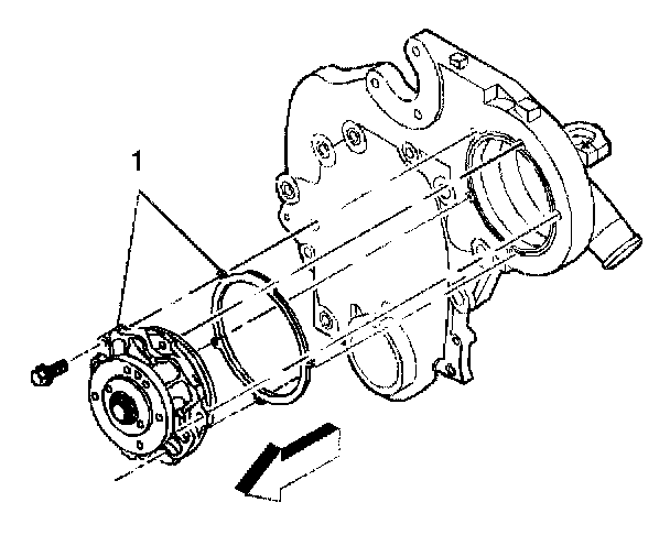 1. Install the water pump gasket and pump (1).