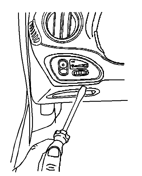 2. Remove the instrument panel (IP) switch trim plate from the instrument panel (IP) using a small flat-bladed tool.
