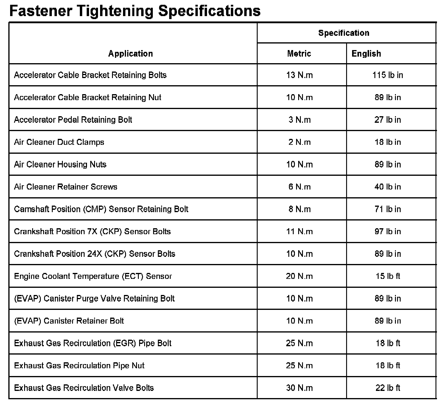 Fastener Tightening Specifications Part 1: