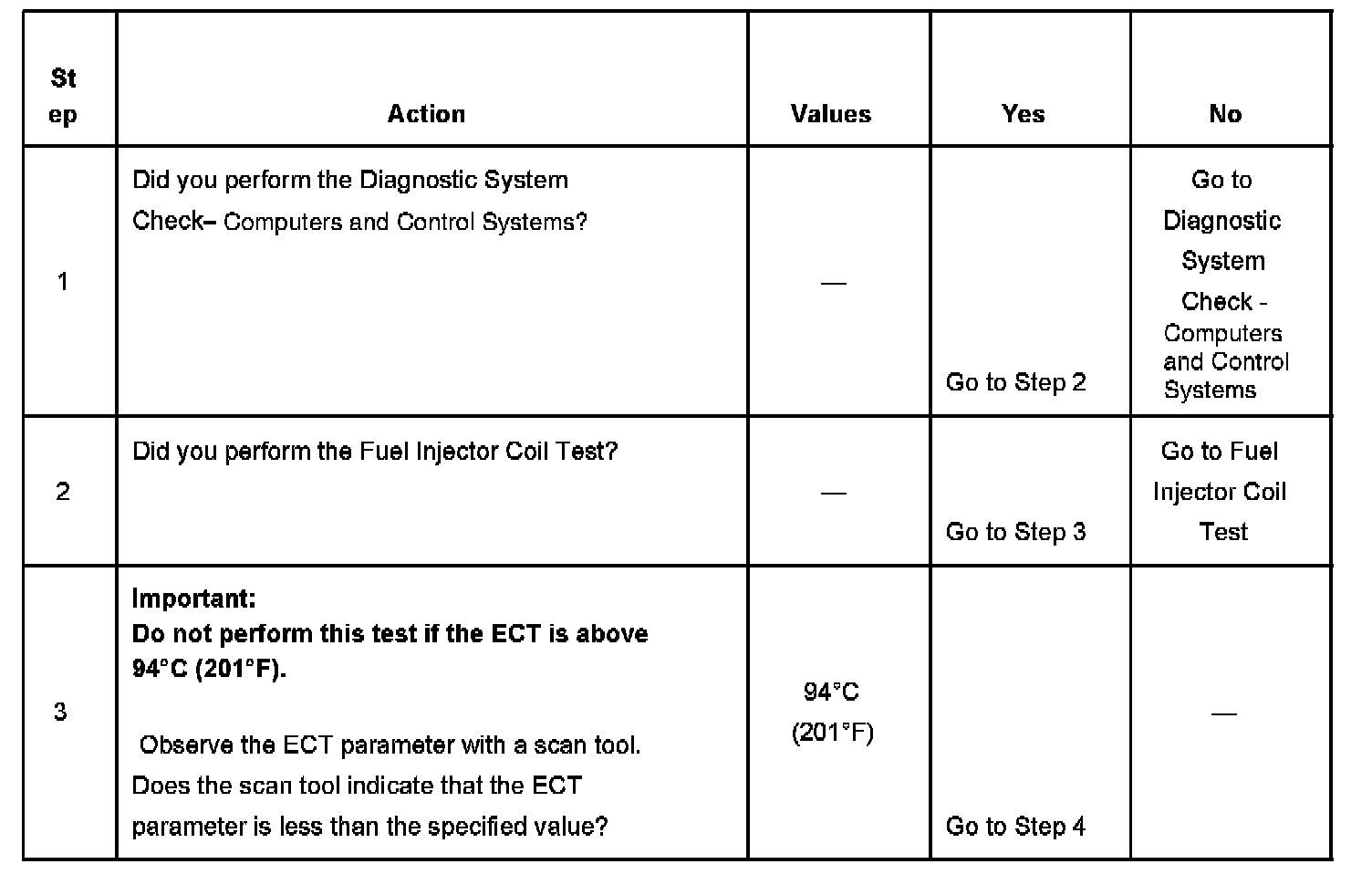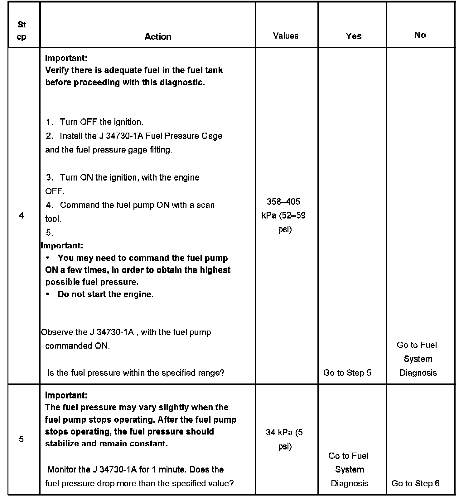 3. The engine coolant temperature (ECT) must be below the operating temperature in order to avoid irregular fuel pressure readings due to hot soak fuel boiling.