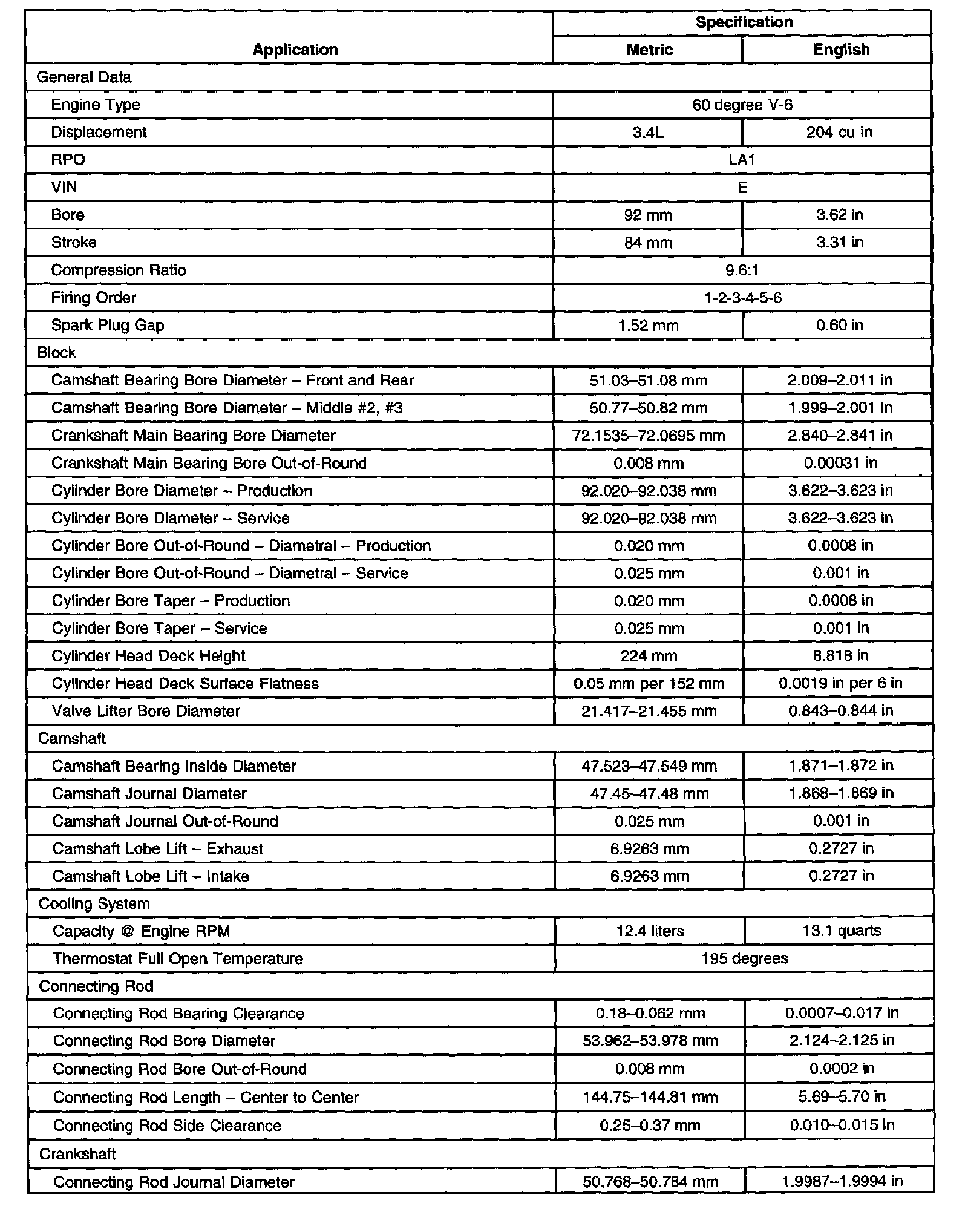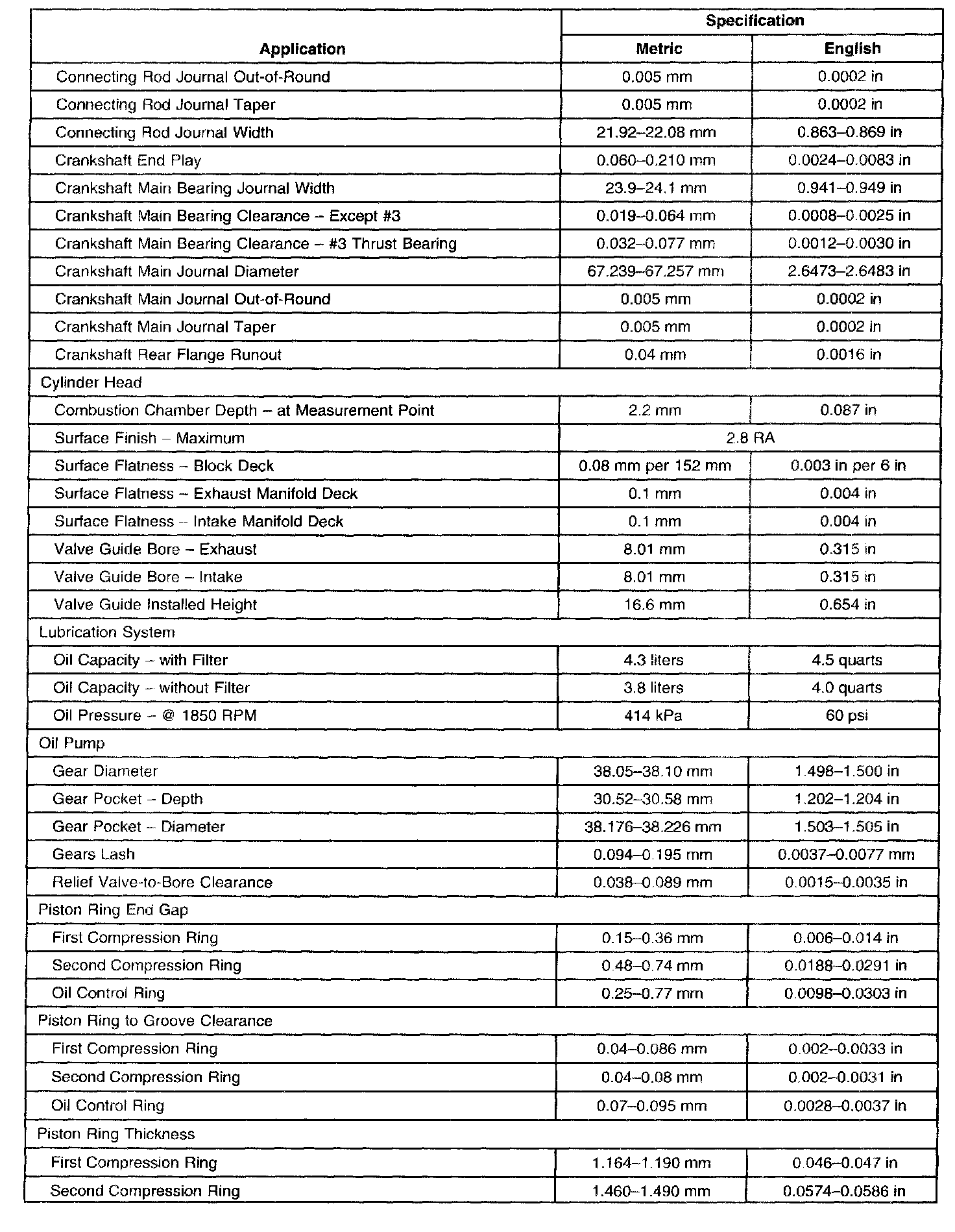 General Engine Data/Specifications