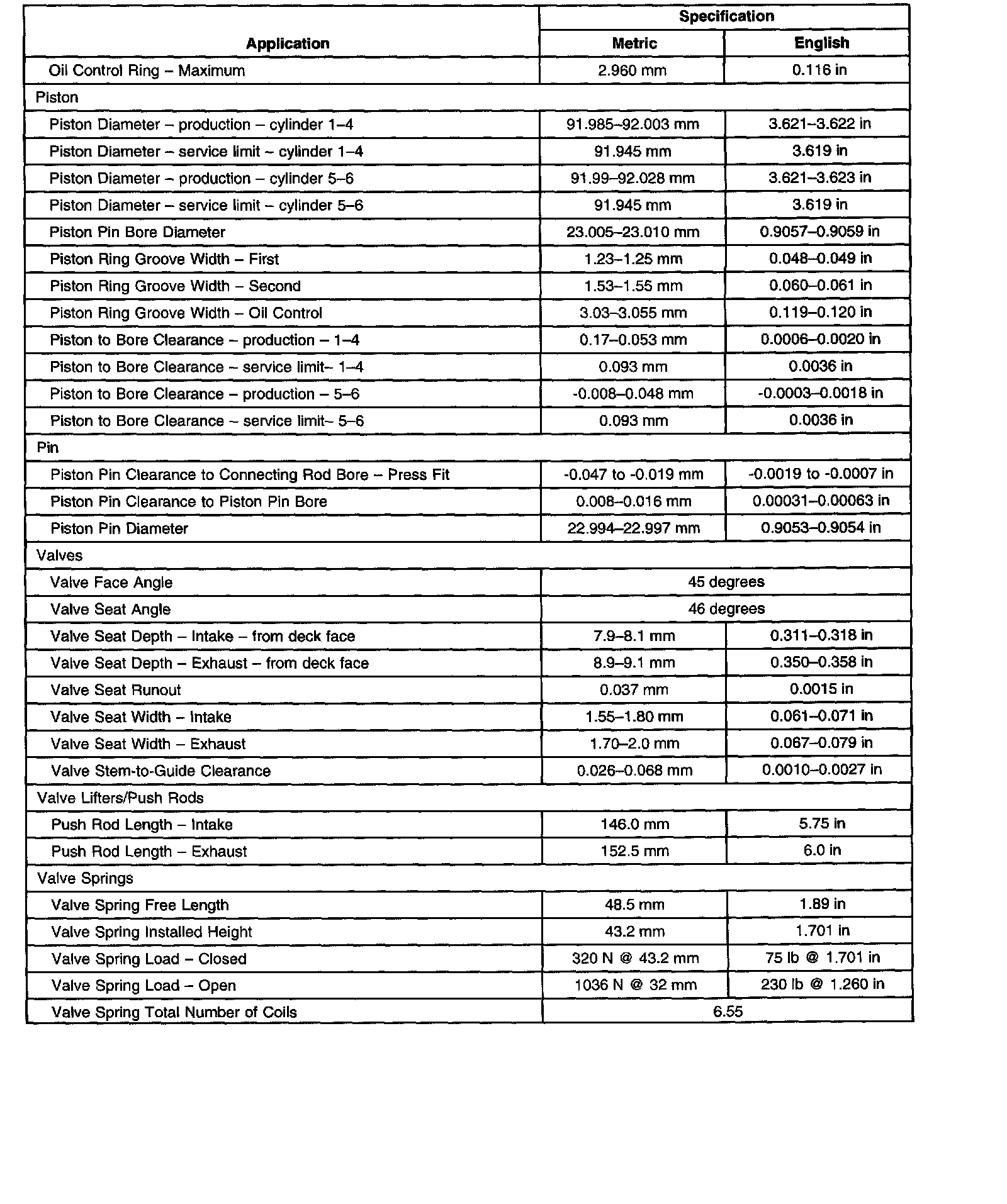 Engine Mechanical Data/Dimensions