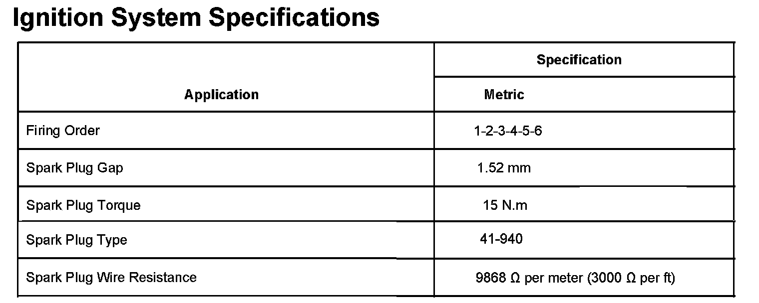 Ignition System Specifications: