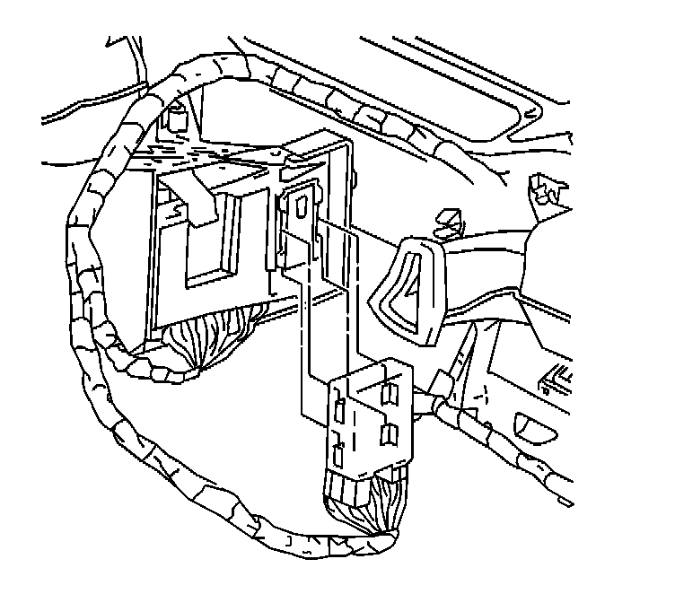 2. Grasp the daytime running lamp (DRL) module and slide it upward to release the module tabs from the retaining slots on the body control module (BCM) bracket. Reposition the module.