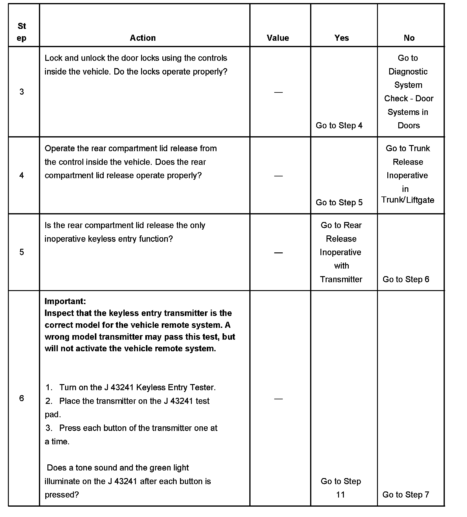 Keyless Entry System Inoperative