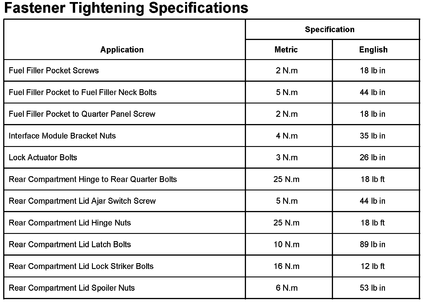 Trunk / Liftgate: Specifications