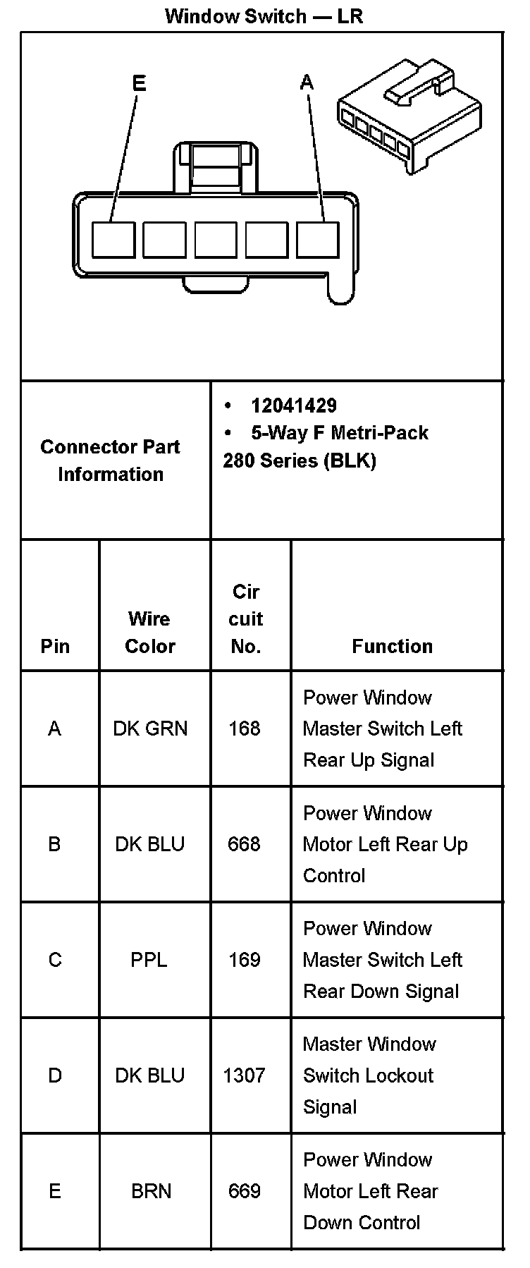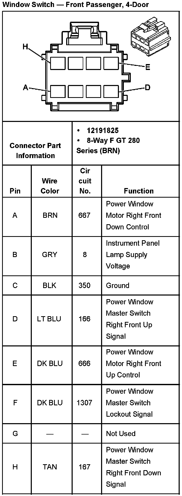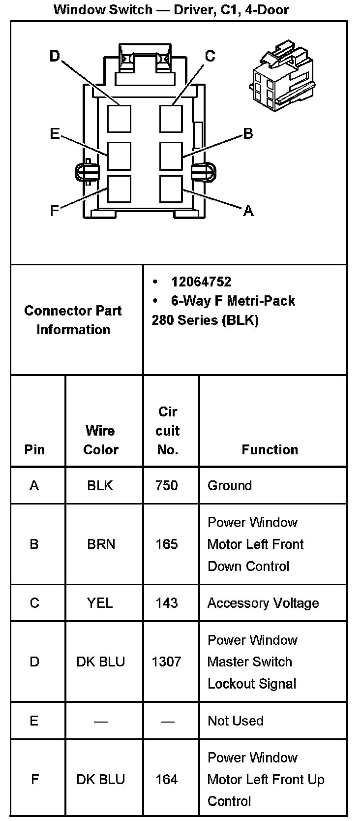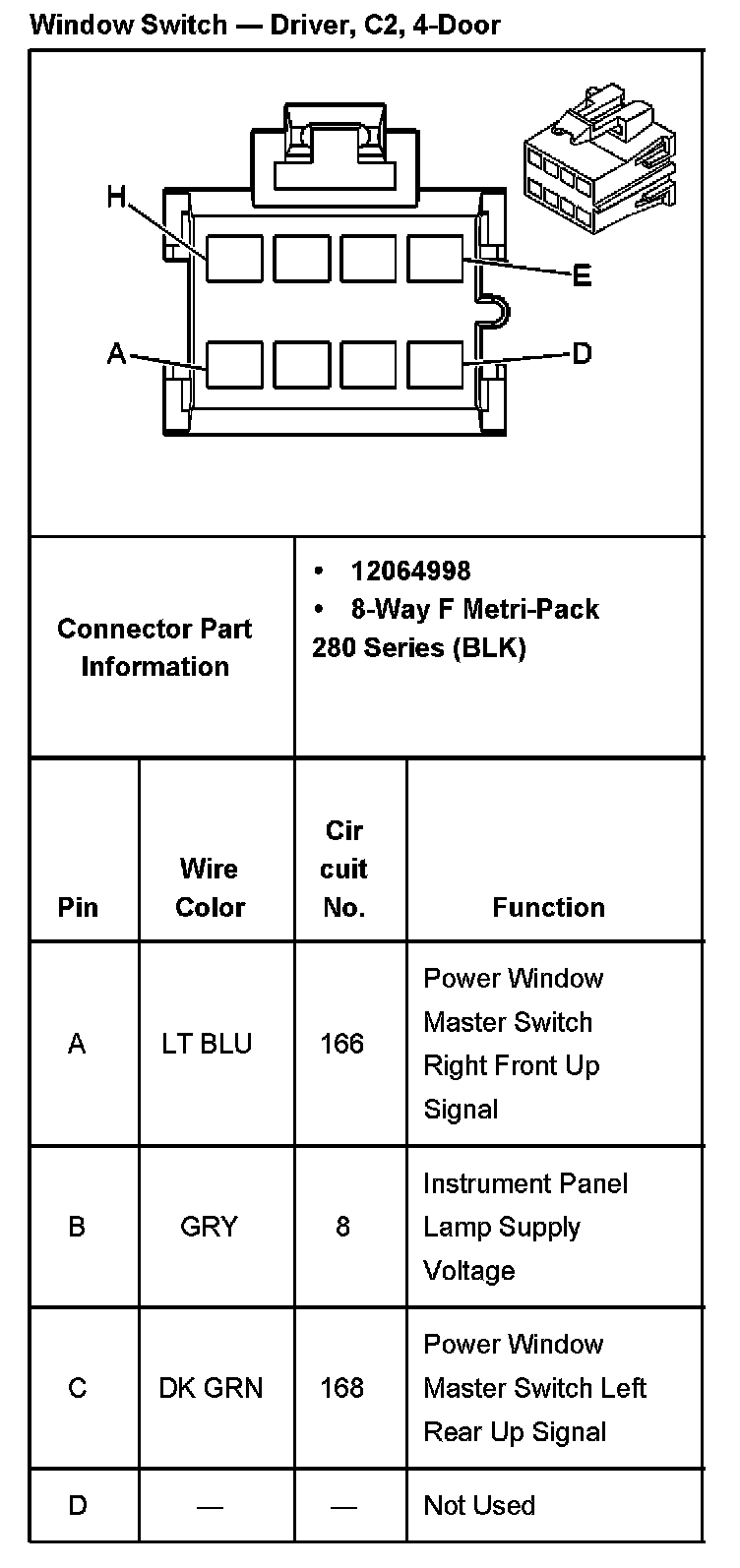 Window Switch - Driver, C2, 4-Door Part 2: