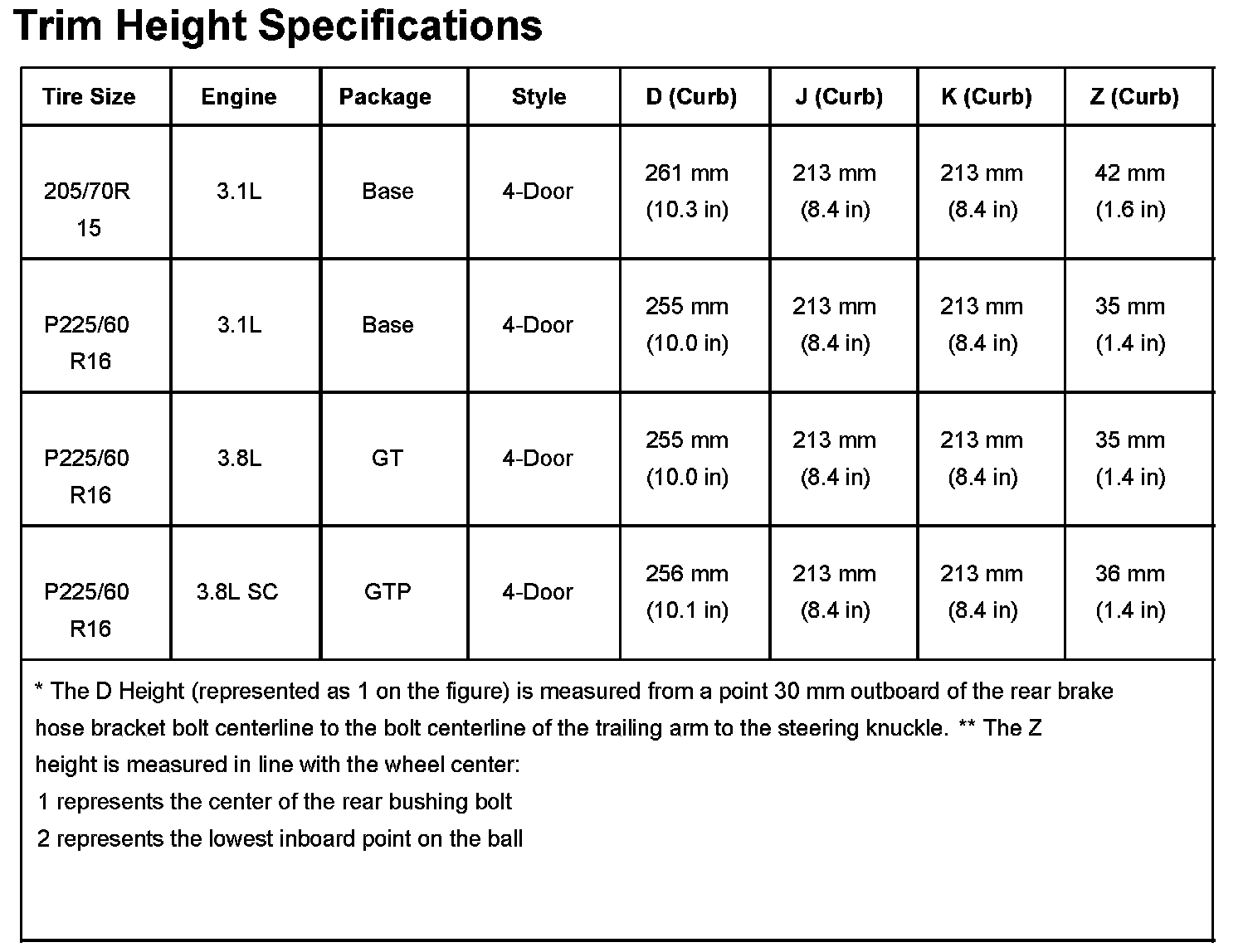 Ride/Trim Height Specifications