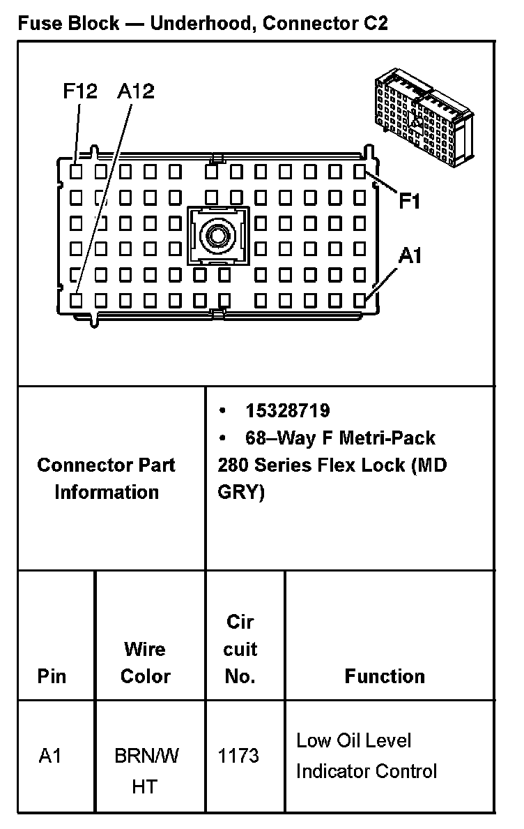 Fuse Block - Underhood, Connector C2 Part 1: