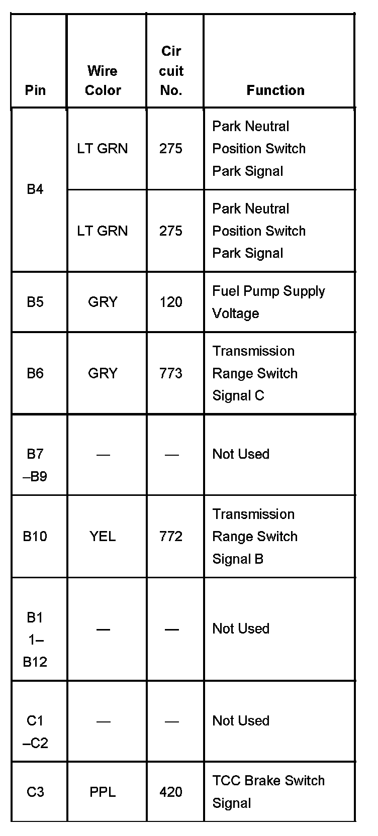 Fuse Block - Underhood, Connector C2 Part 3: