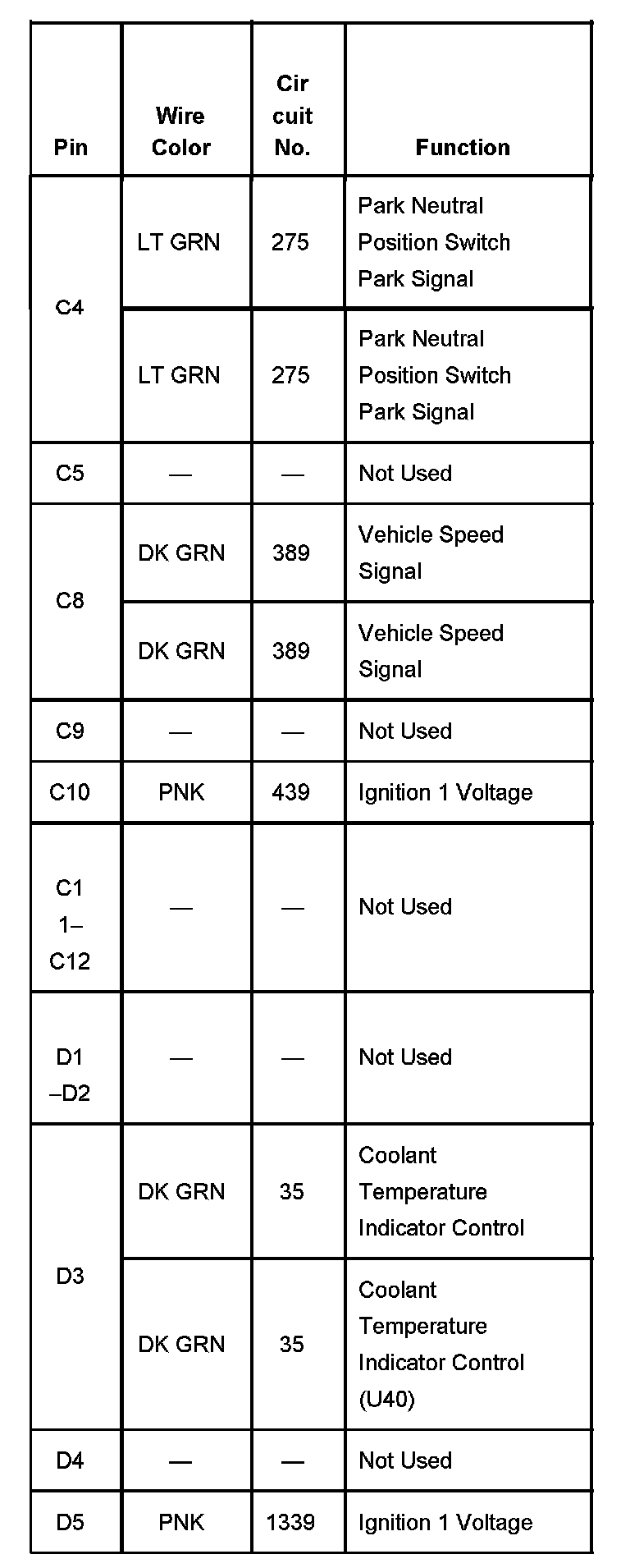 Fuse Block - Underhood, Connector C2 Part 2:
