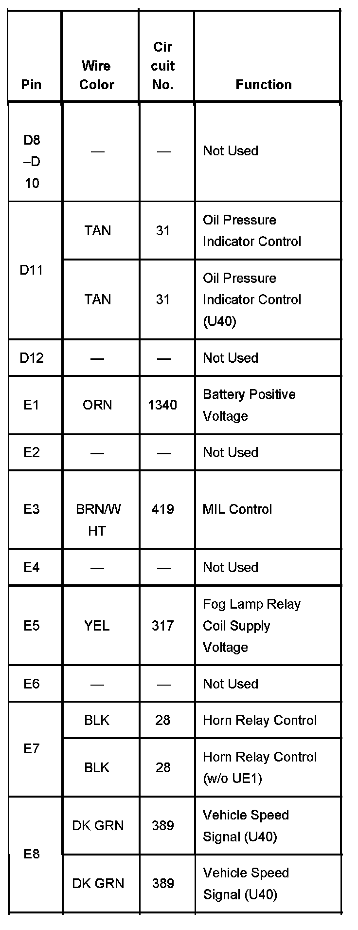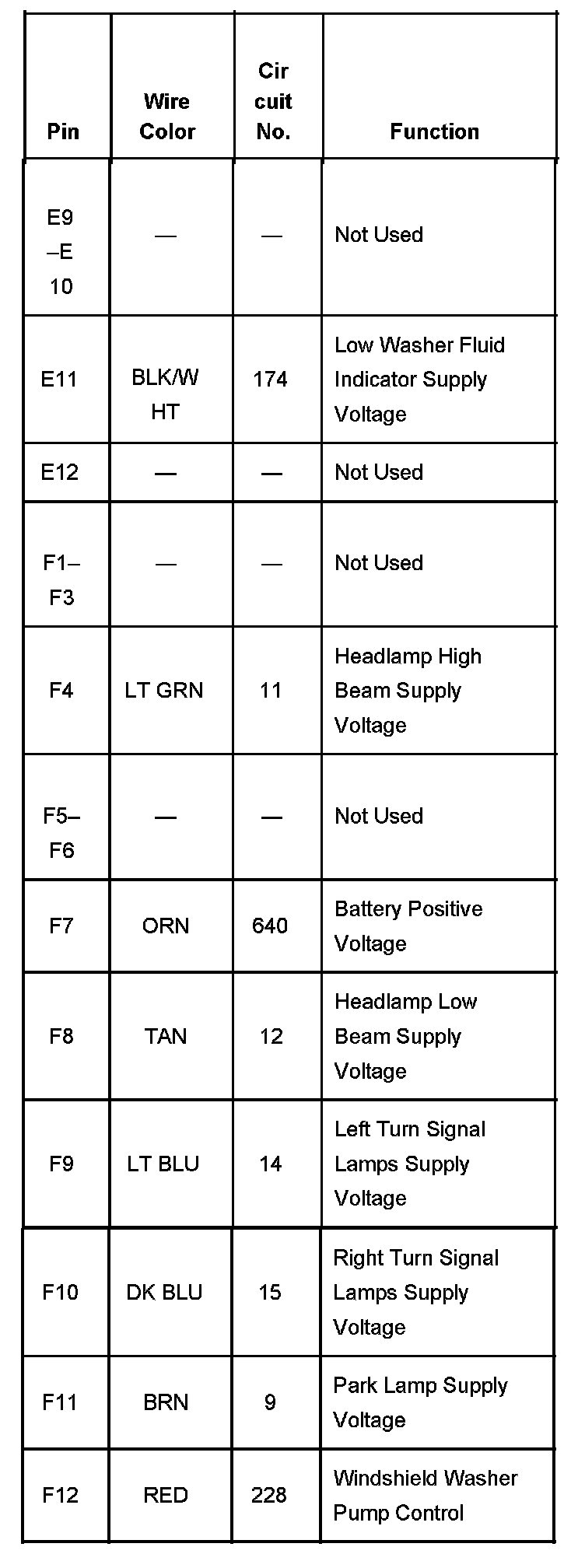Fuse Block - Underhood, Connector C2 Part 7:
