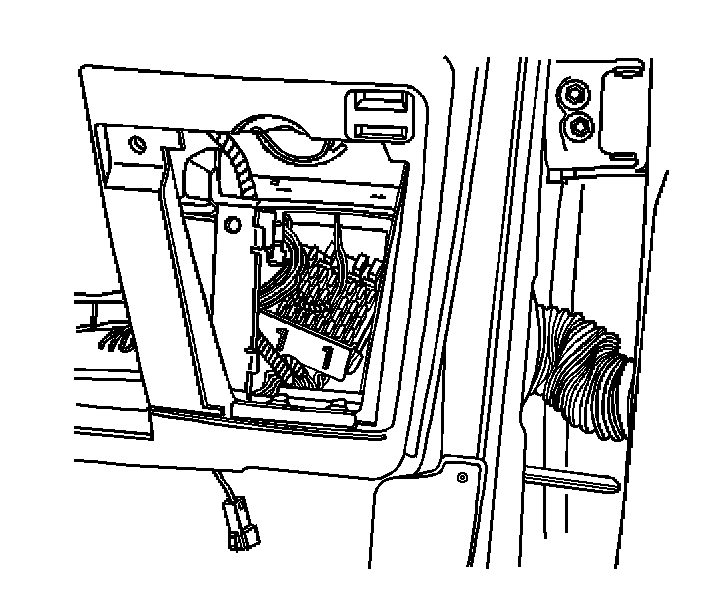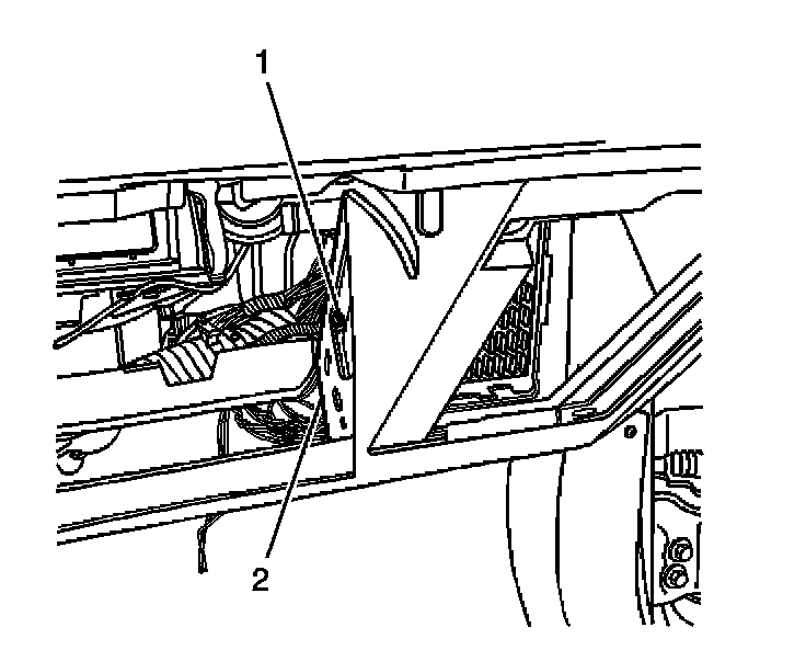 6. Disconnect the wiring harness retainer (1) from the I/P trim pad (2).