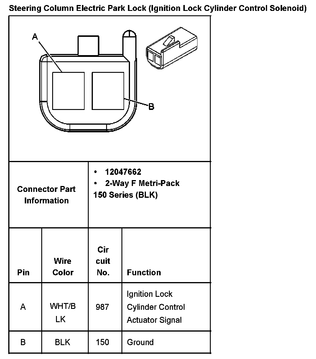 Steering Column Electric Park Lock (Ignition Lock Cylinder Control Solenoid):
