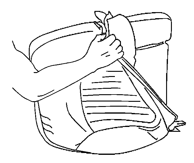 8. Reach inside of the least back cover and unfasten the hook and loop retainers securing the front seat back cover to the pad.