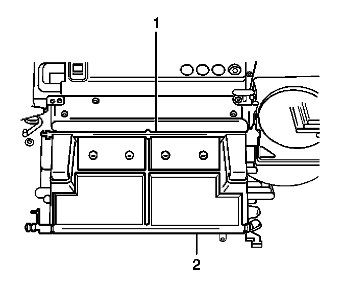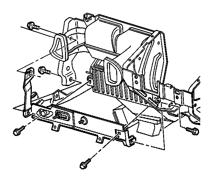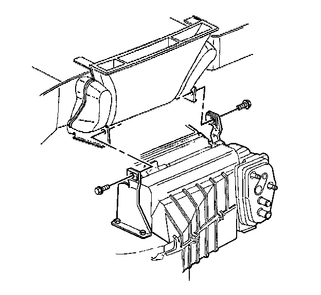 14. Remove the bolts from the center support bracket of the HVAC module.