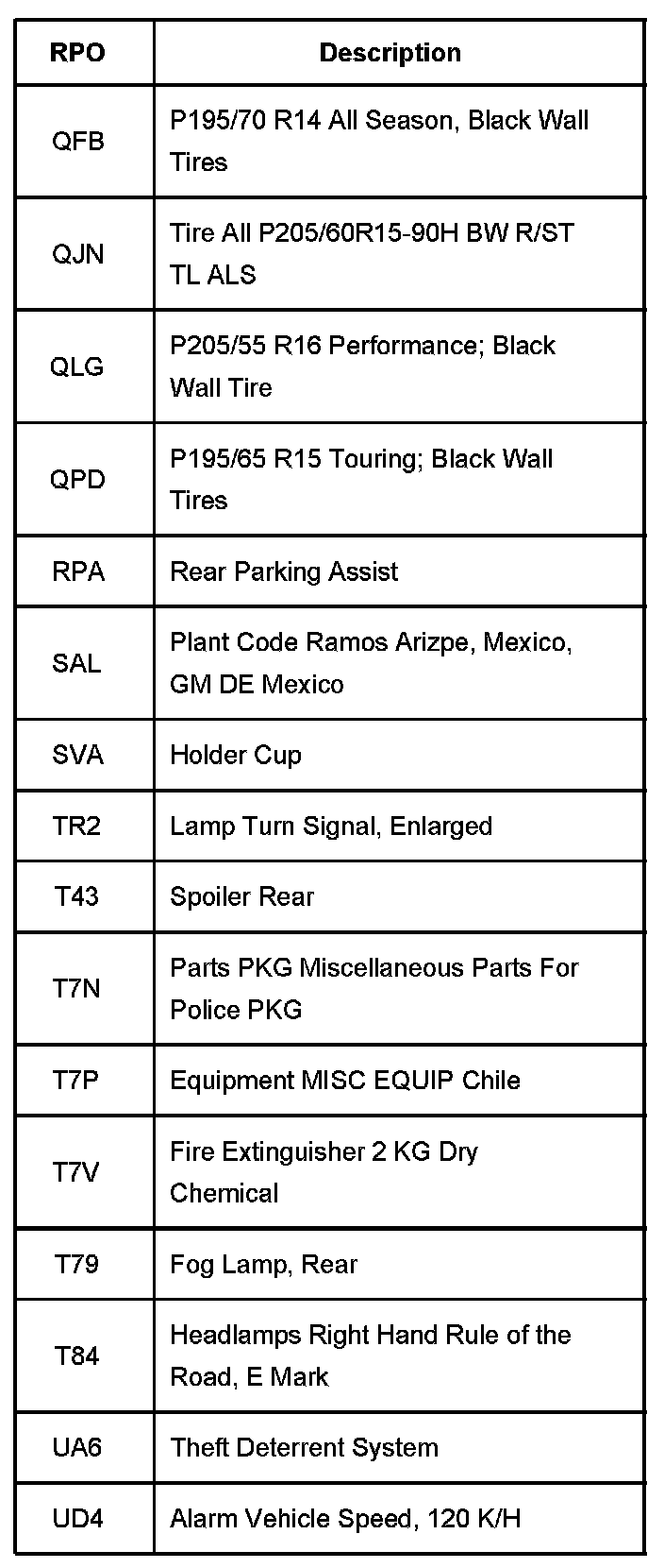 RPO Code List Part 1: