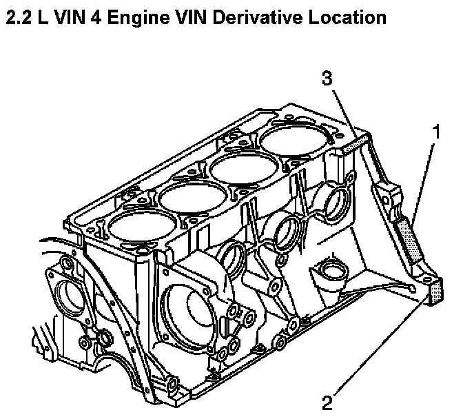 The primary (2) and secondary (3) hand stamp locations for the Vehicle Identification Number (VIN).