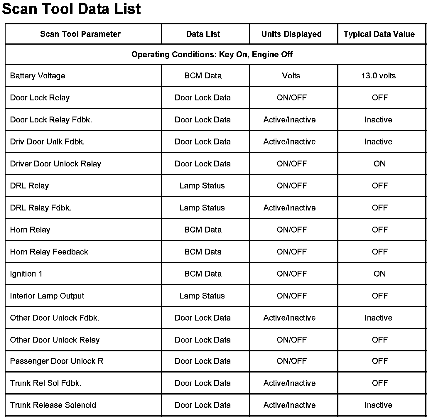 Scan Tool Data List: