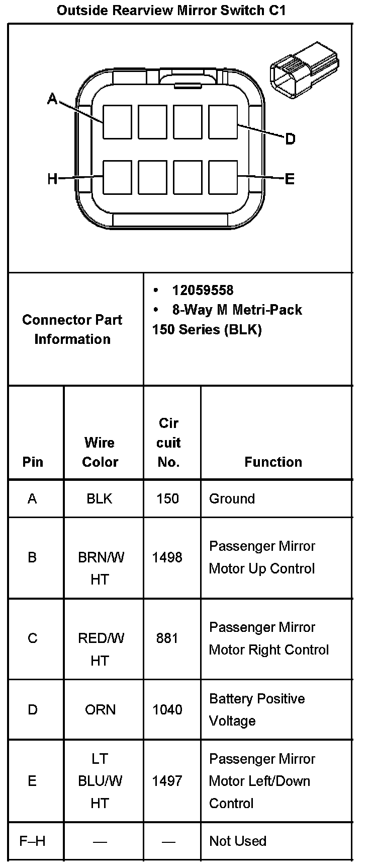 Outside Rearview Mirror Switch C1: