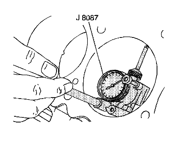 13. Use the following procedure in order to measure the engine block flange runout at the mounting bolt hole bosses: