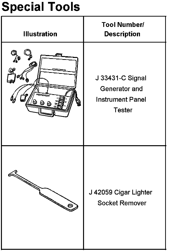 Instrument Panel, Gauges and Warning Indicators: Tools and Equipment