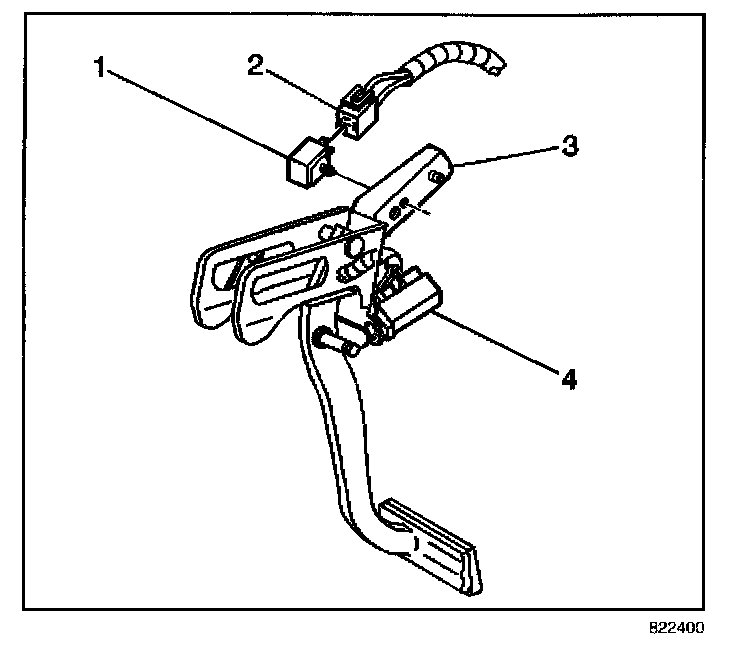 The Turn Signal/Hazard Flasher Module (1) is located under the I/P to the right of the steering column, on brake pedal bracket (3).