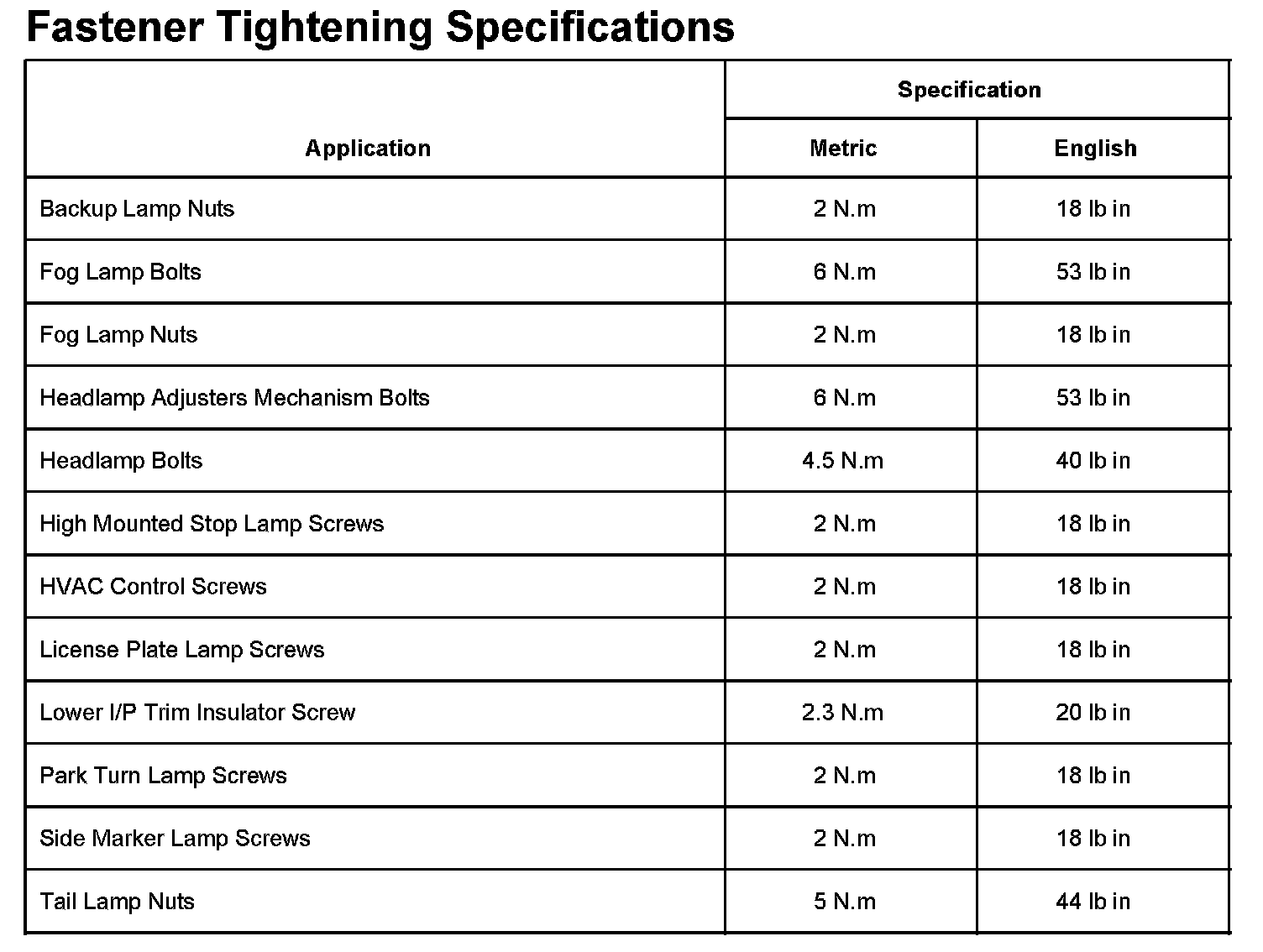 Lighting and Horns: Specifications