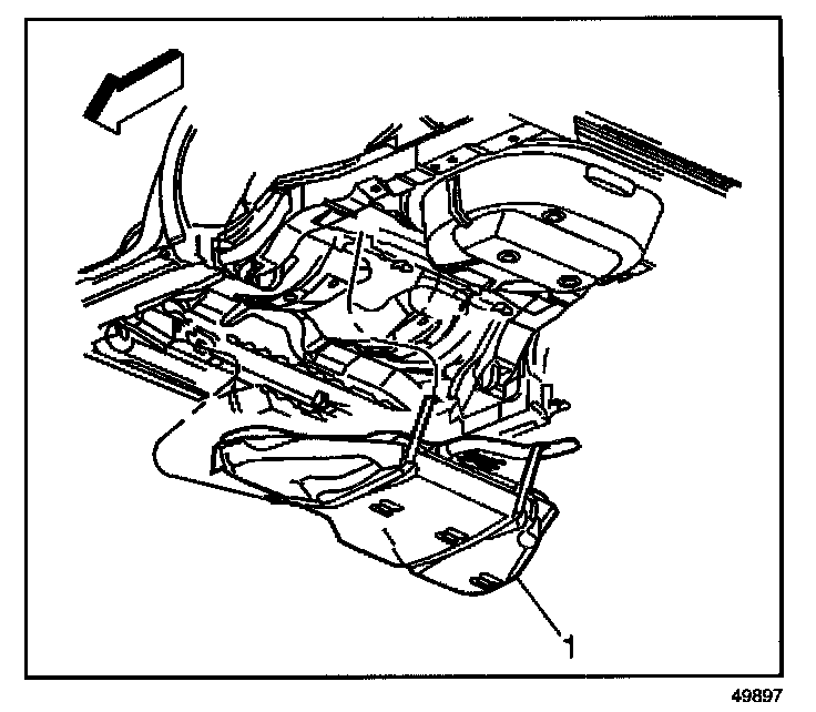 12. With the aid of an assistant, support the fuel tank (1).