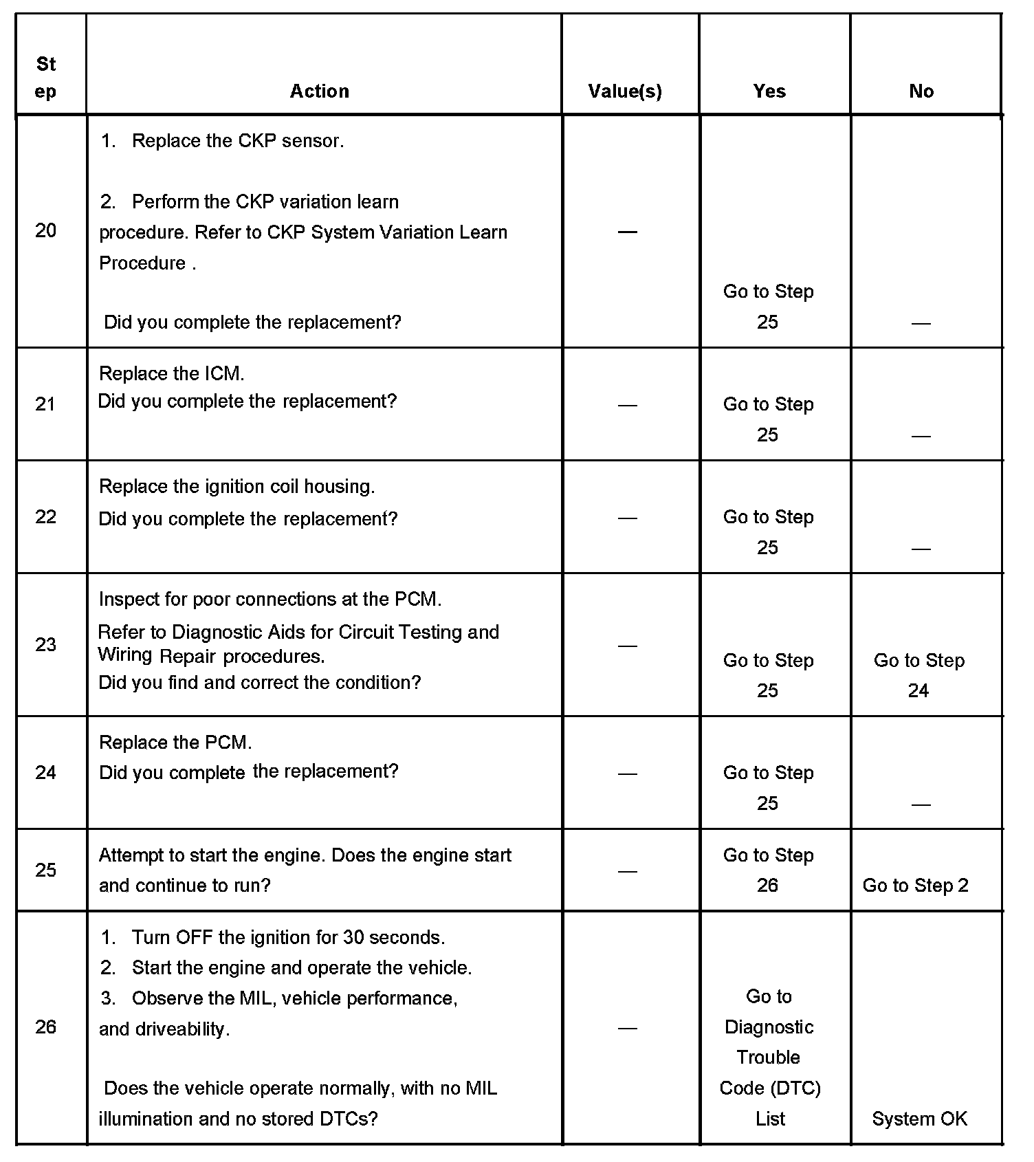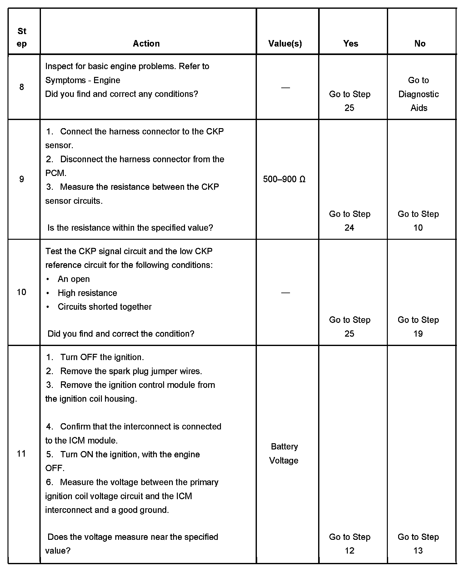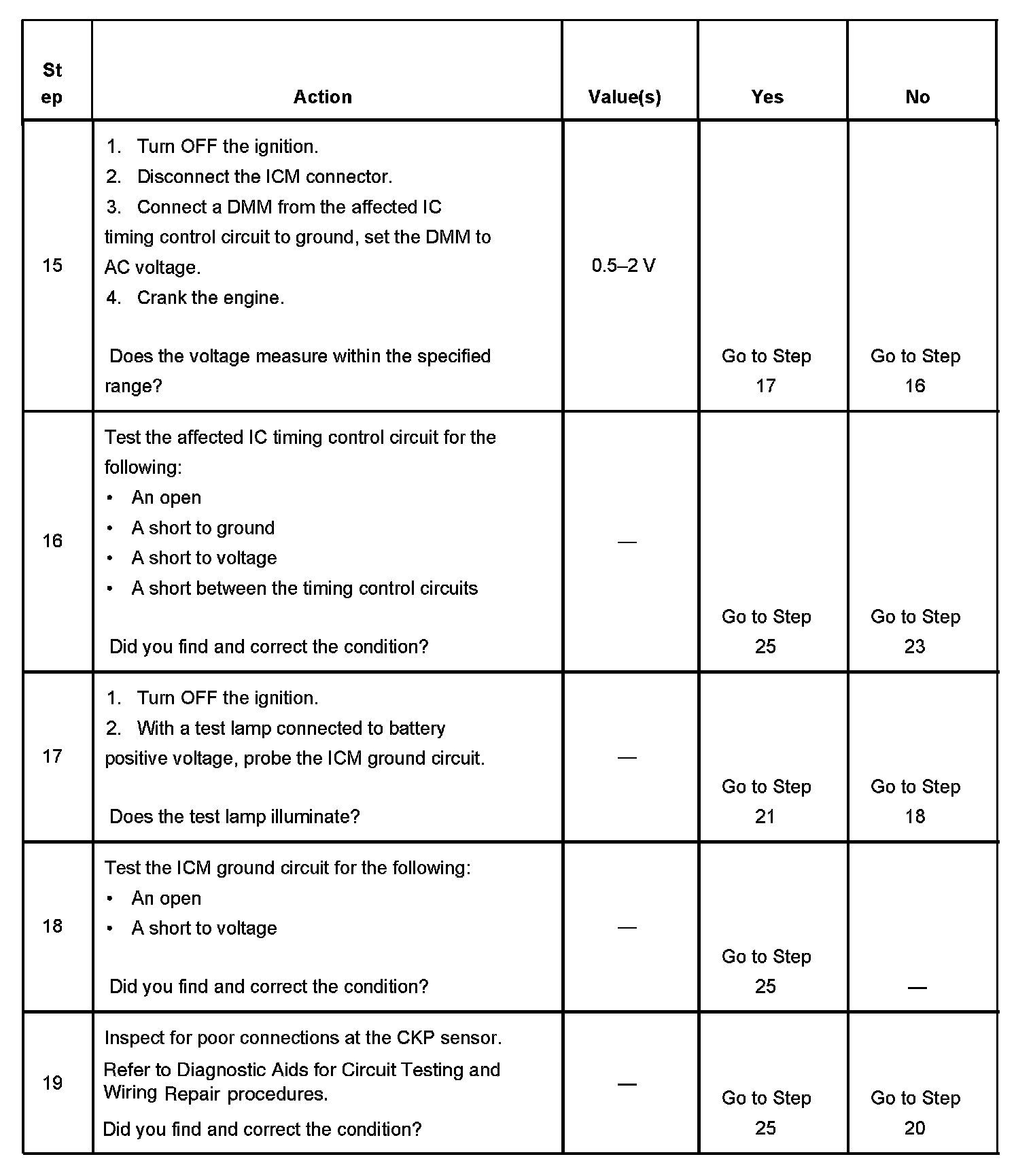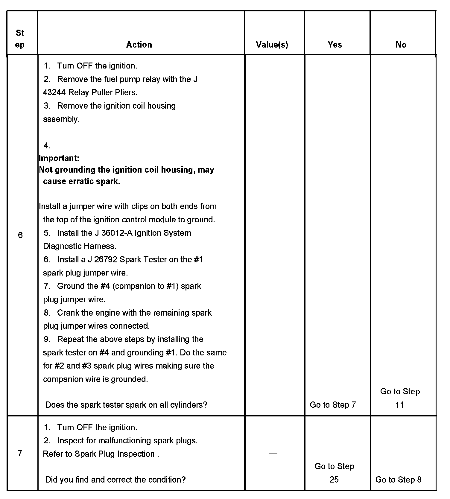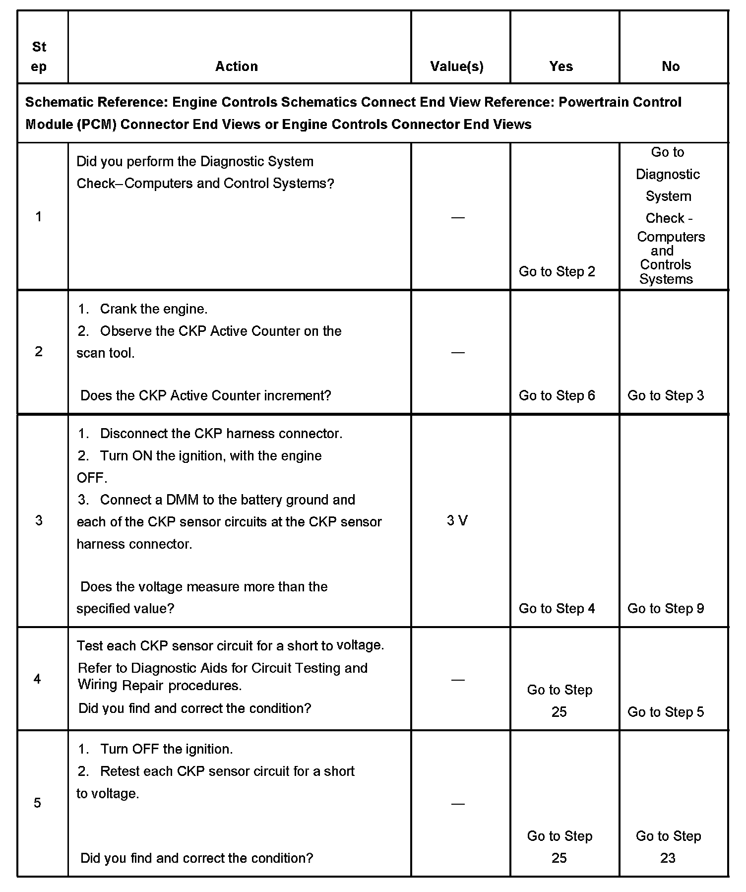 The numbers below refer to the step numbers on the diagnostic table.