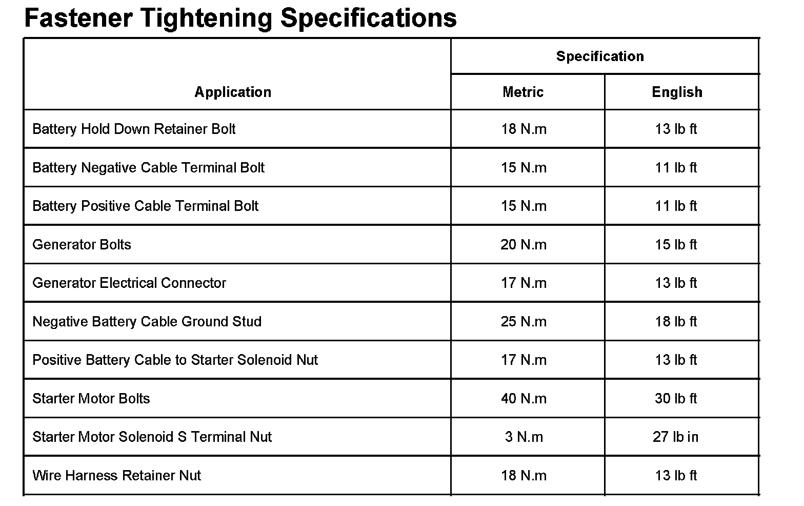 Fastener Tightening Specifications: