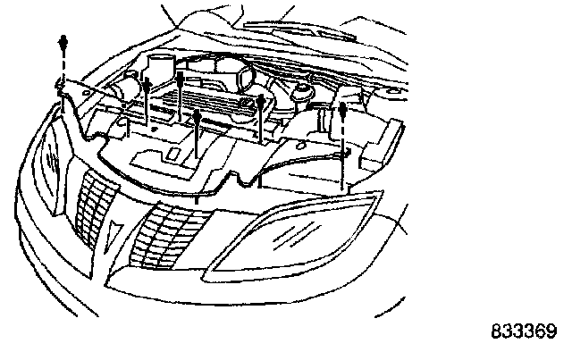 3. Remove the six push-in retainers that attach the hood close out filler panel, and remove the panel.