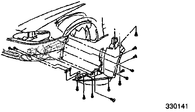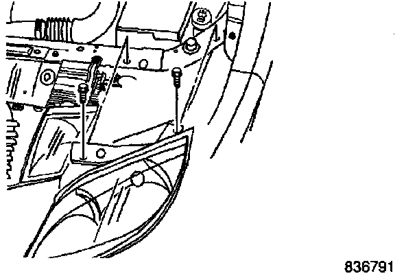 4. Remove the one 10 mm hex head bolt and one Phillip head screw that attach the left parking lamp and grille assembly to the body.