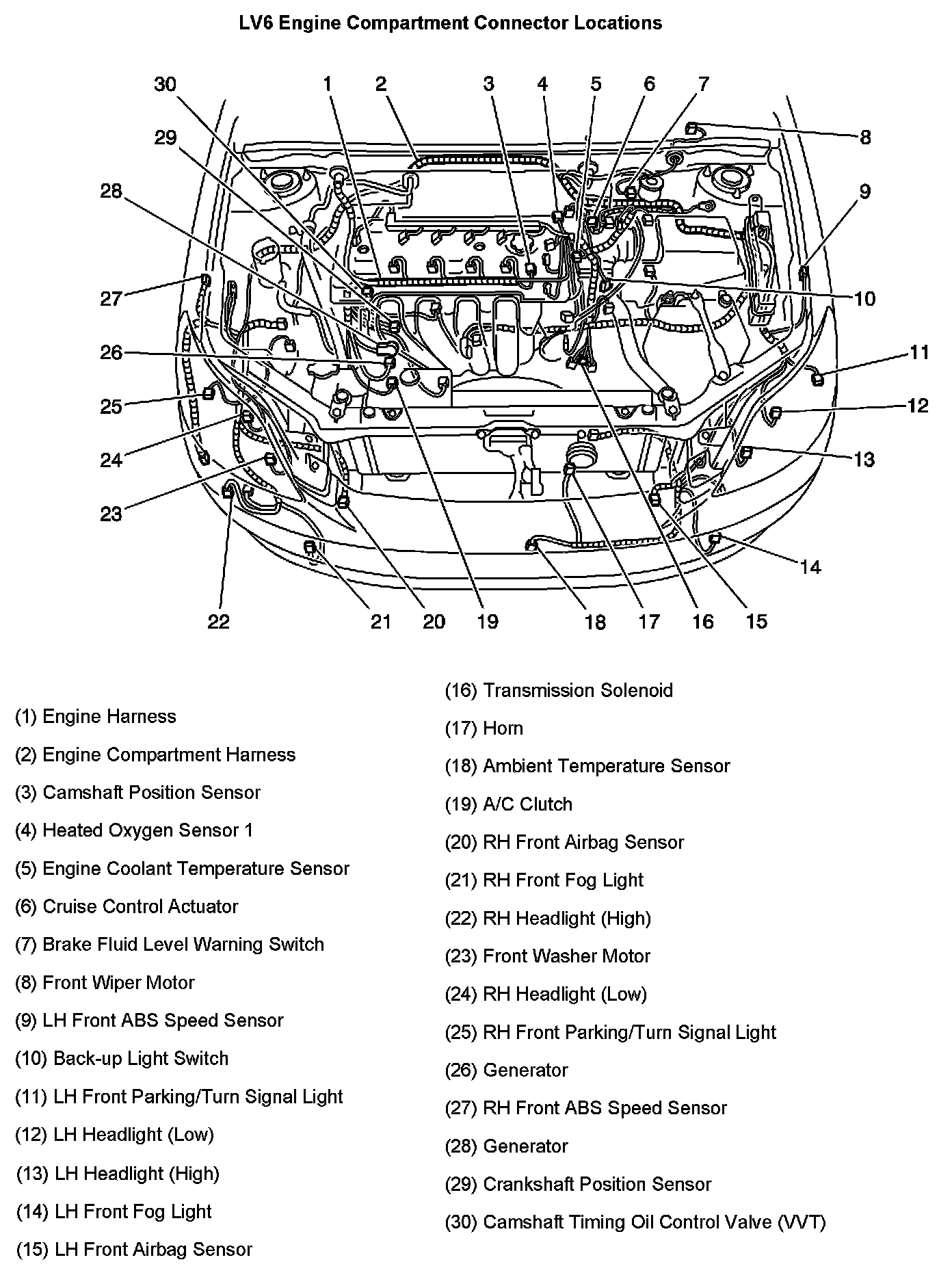 Engine Compartment Connector Locations:
