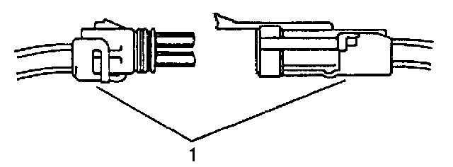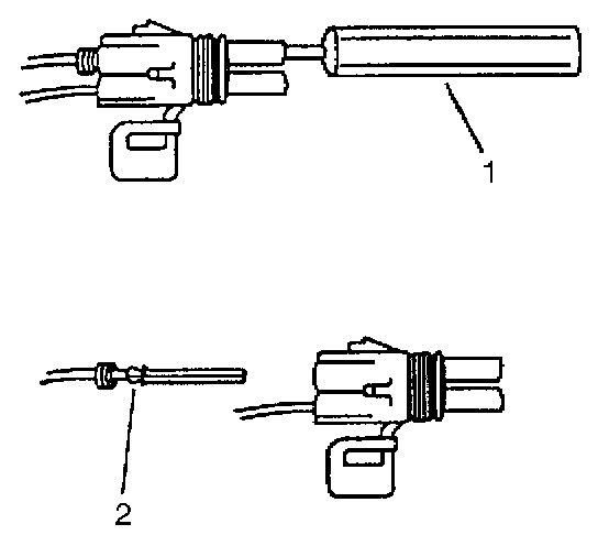 4. Insert the Weather Pack(R) terminal removal tool into the front (mating end) of the connector cavity until it rests on the cavity shoulder (1).