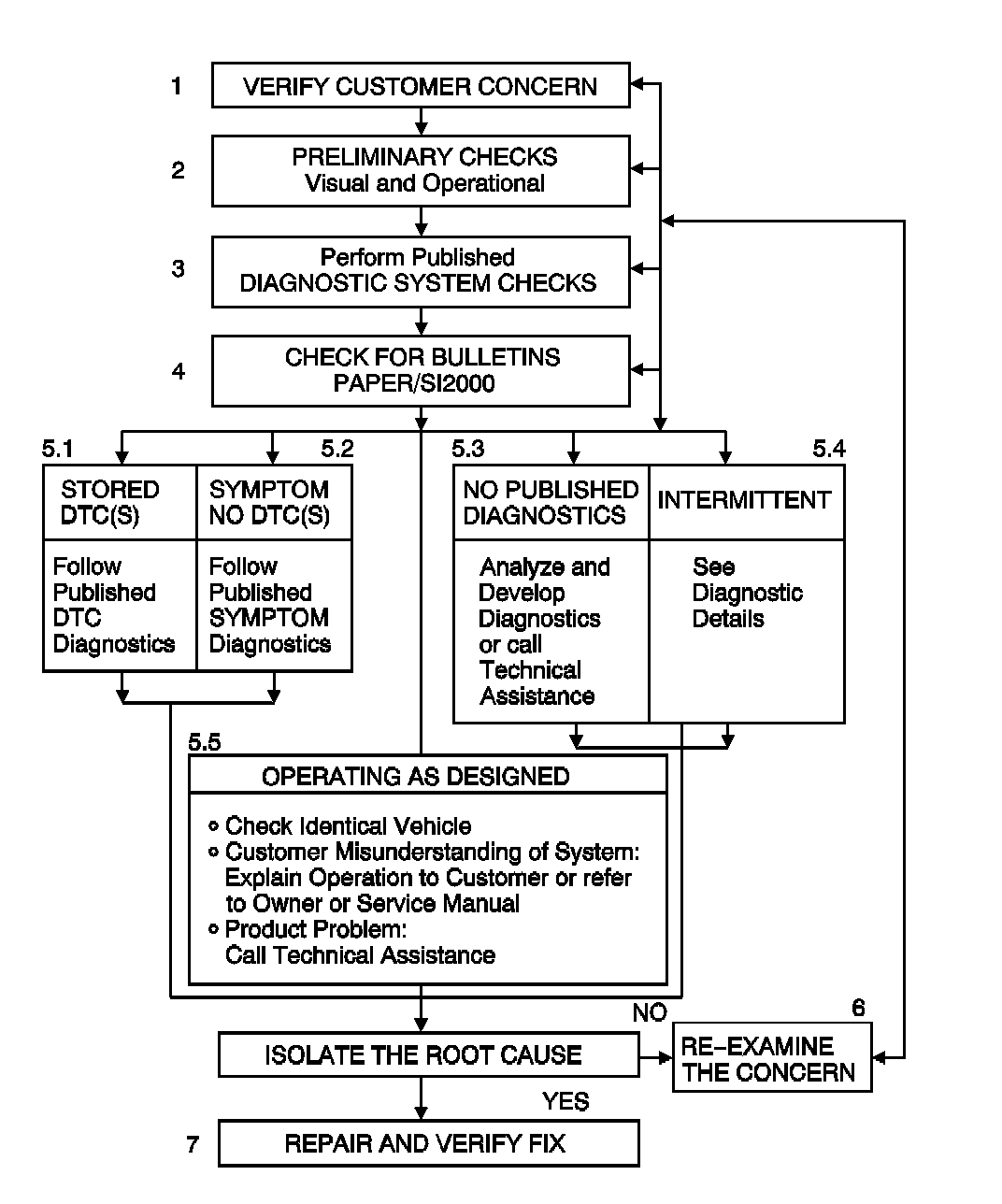 6 Re-examine the Concern: If a technician cannot successfully find or isolate the concern, a re-evaluation is necessary. Re-verify the concern. The concern could be an intermittent or normal.