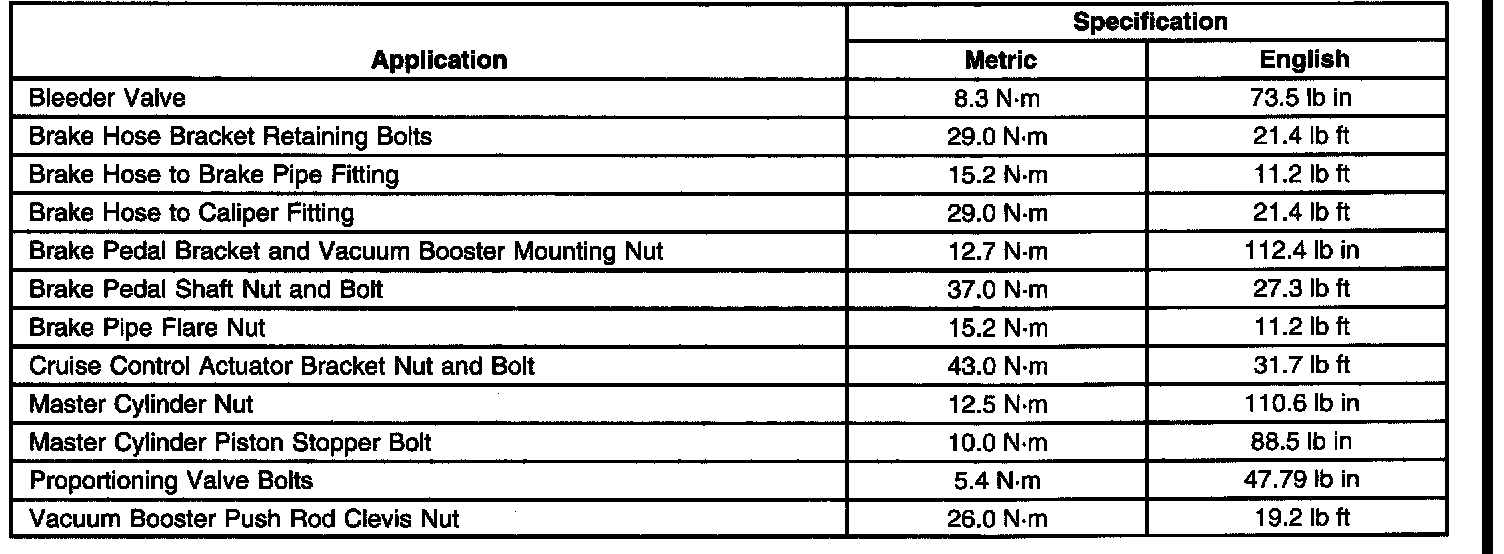 Fastener Tightening Specifications: