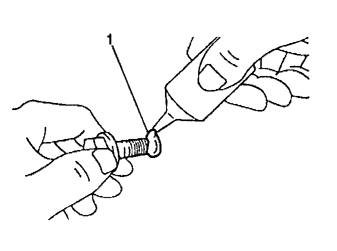 2. Apply GM P/N 12345493 (Canadian P/N 10953488) or the equivalent, to the flywheel retaining bolt threads (1).