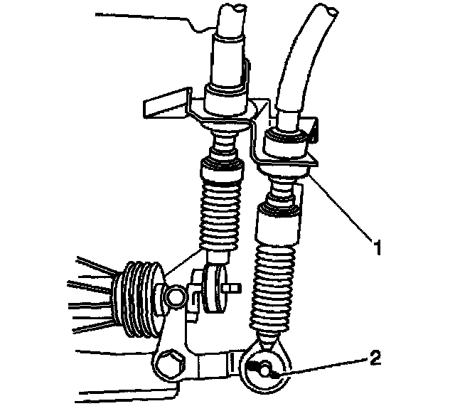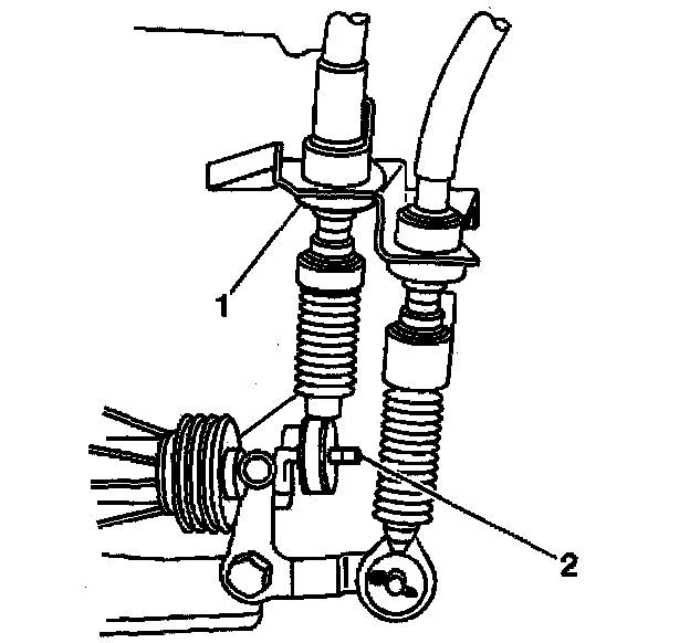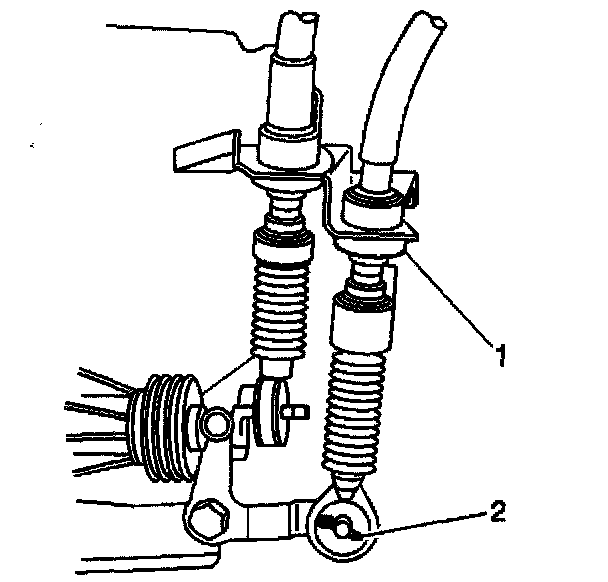 16. Remove the clip (2), then disconnect the shift cable from the bracket.