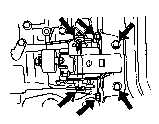 4. Install the left engine mount with the 5 bolts and nut.